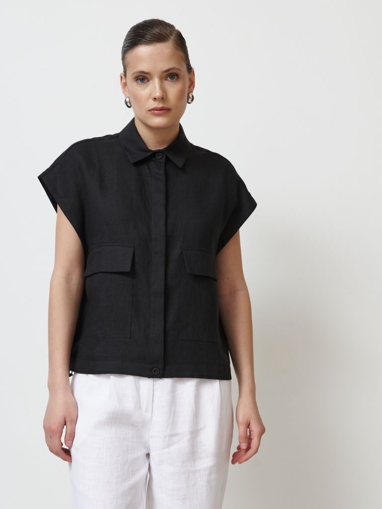Отлично сочетается с брюками, юбками и шортами из льна. Подходит для повседневных, городских и минималистичных образов.
