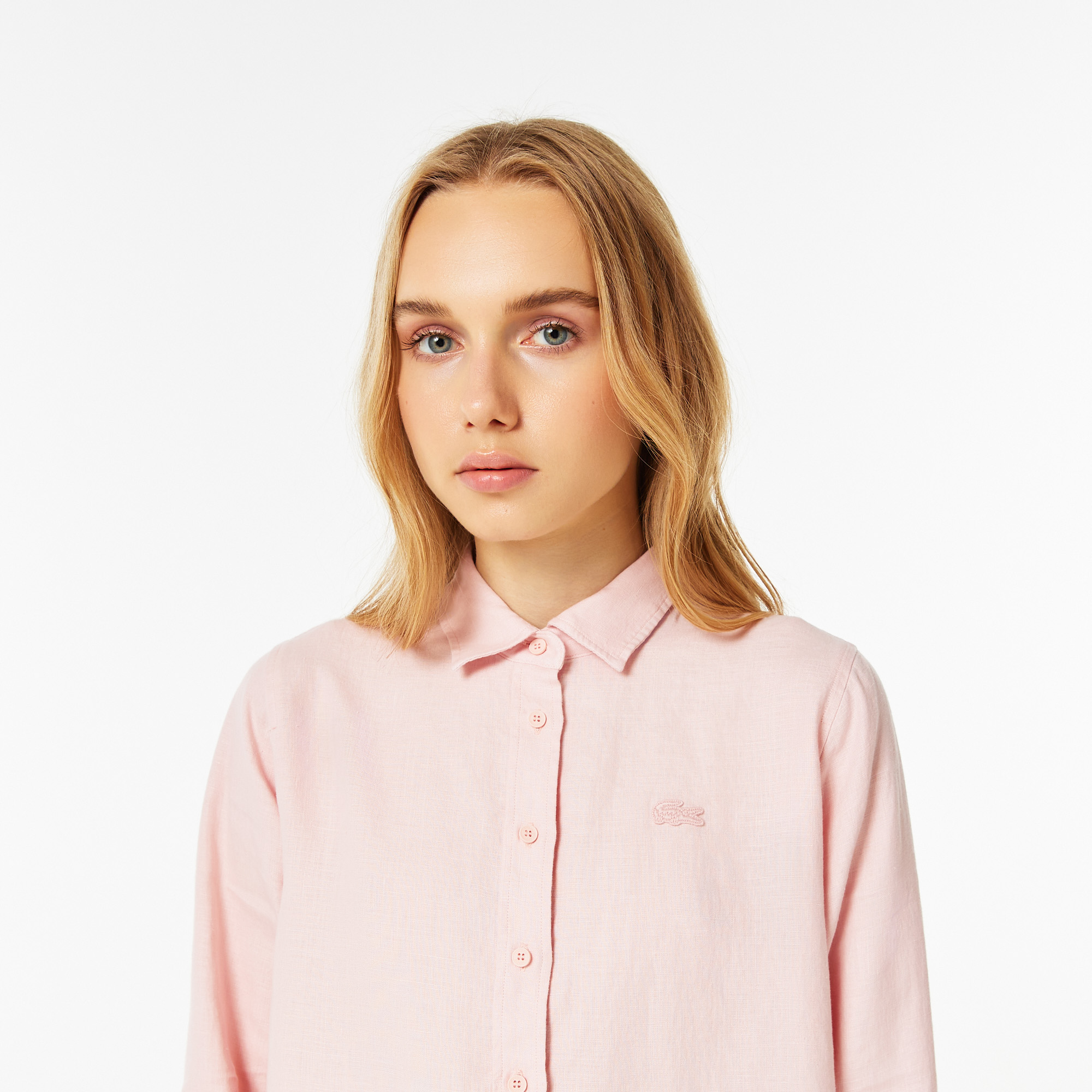 Классический воротник;\Логотип в тон изделия на груди\Материал: 100% конопля\Рост модели 174 см, размер одежды 36
