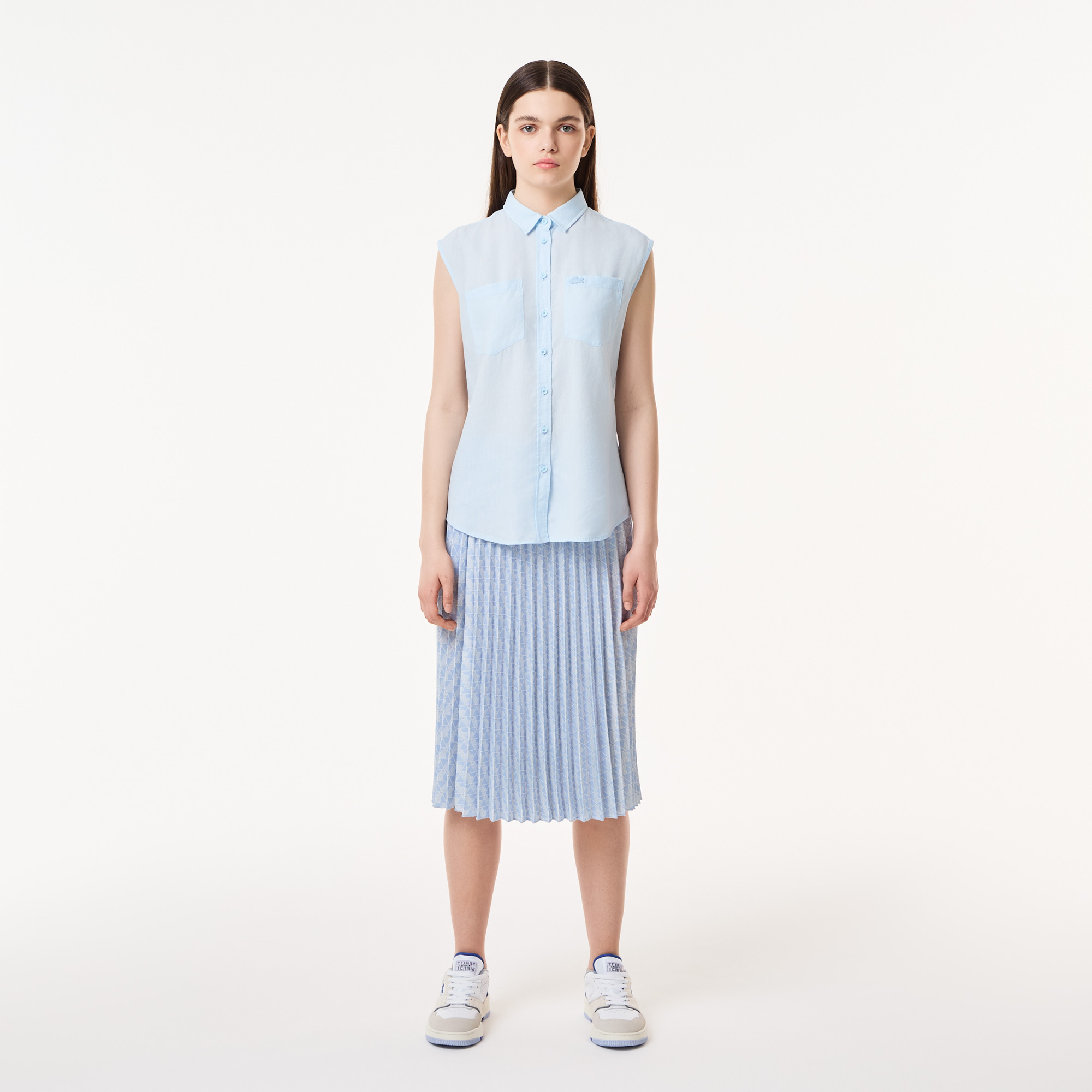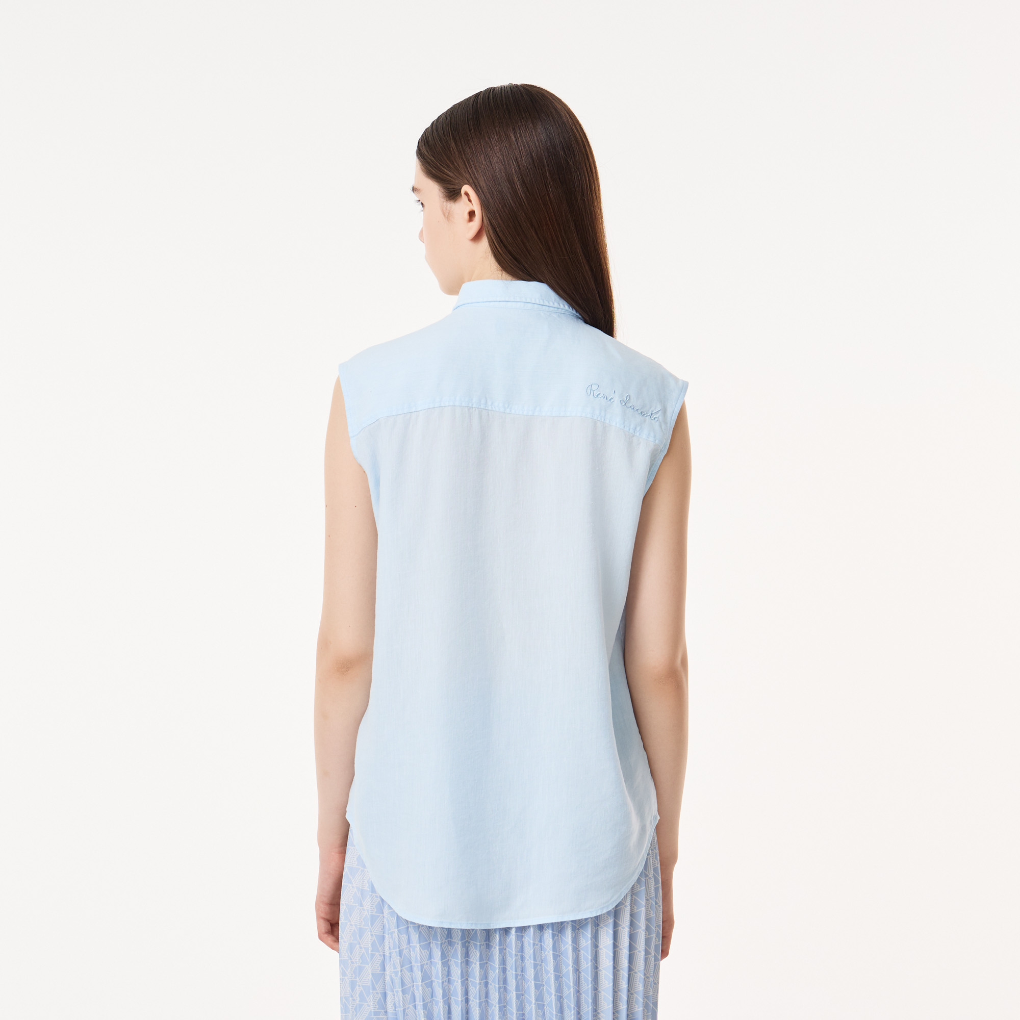 Без рукавов\Надпись Rene Lacoste на спине\Накладные карманы на груди\Логотип в тон изделия\Материал: верх-54% лен 46% тенсель\Рост модели 177 см, размер одежды 36
