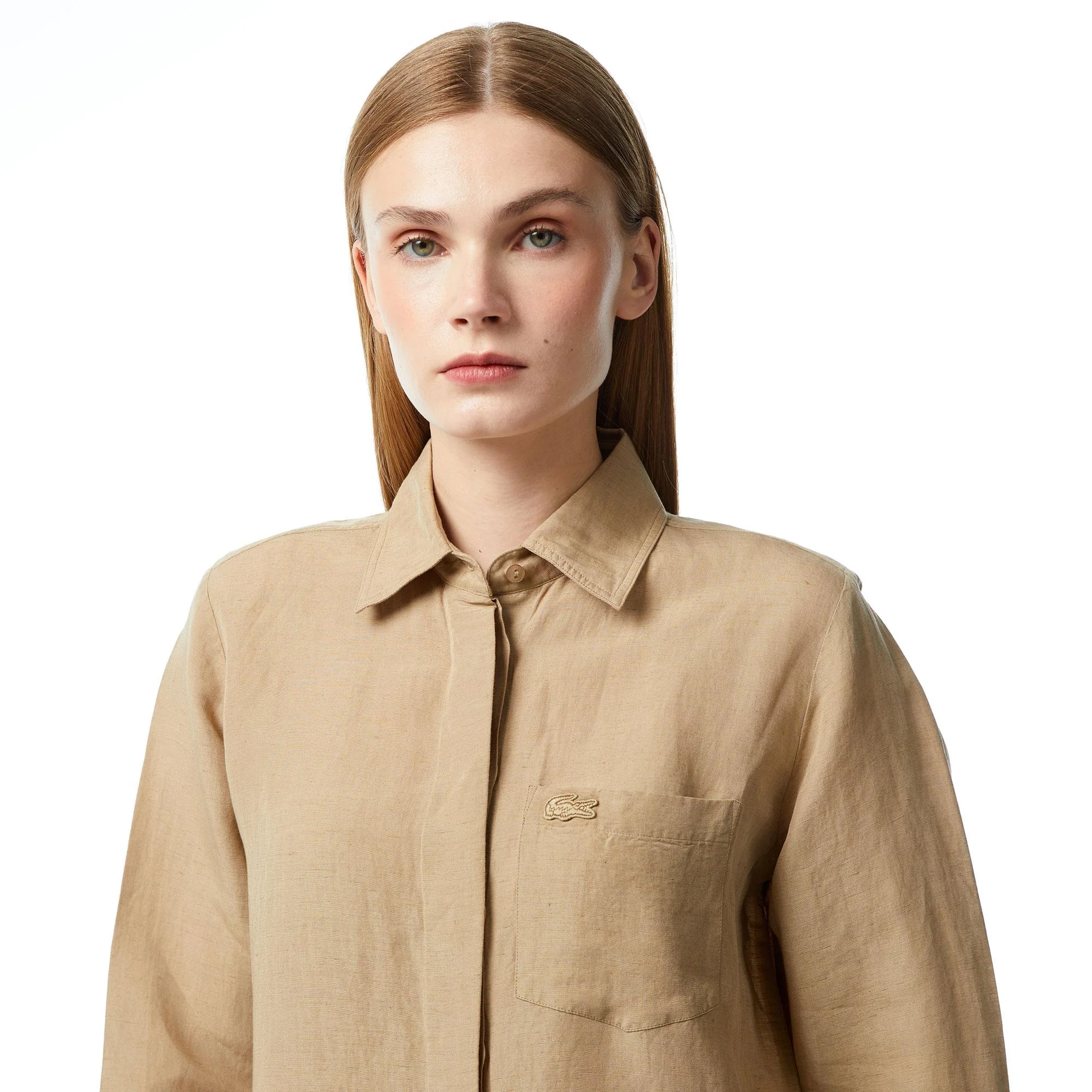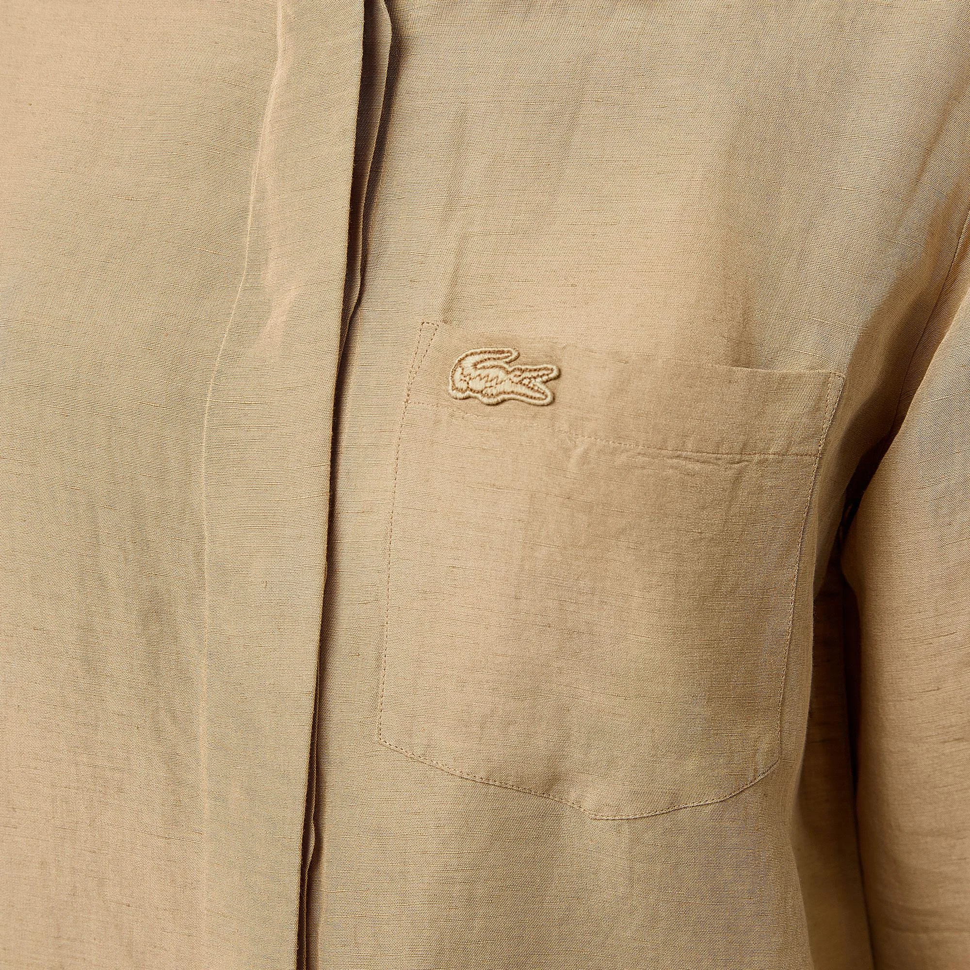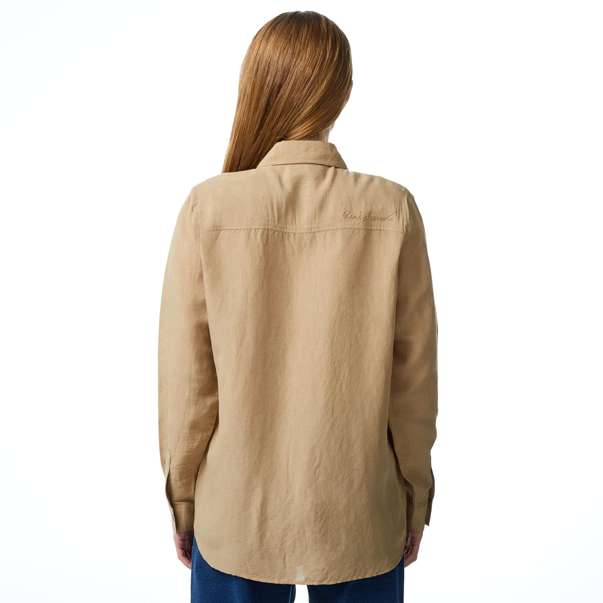 Скрытые пуговицы под планкой\Накладной карман на груди\В полоску\Логотип в тон изделия\Материал: верх-57% лен 43% вискоза\Рост модели 174 см, размер одежды 36