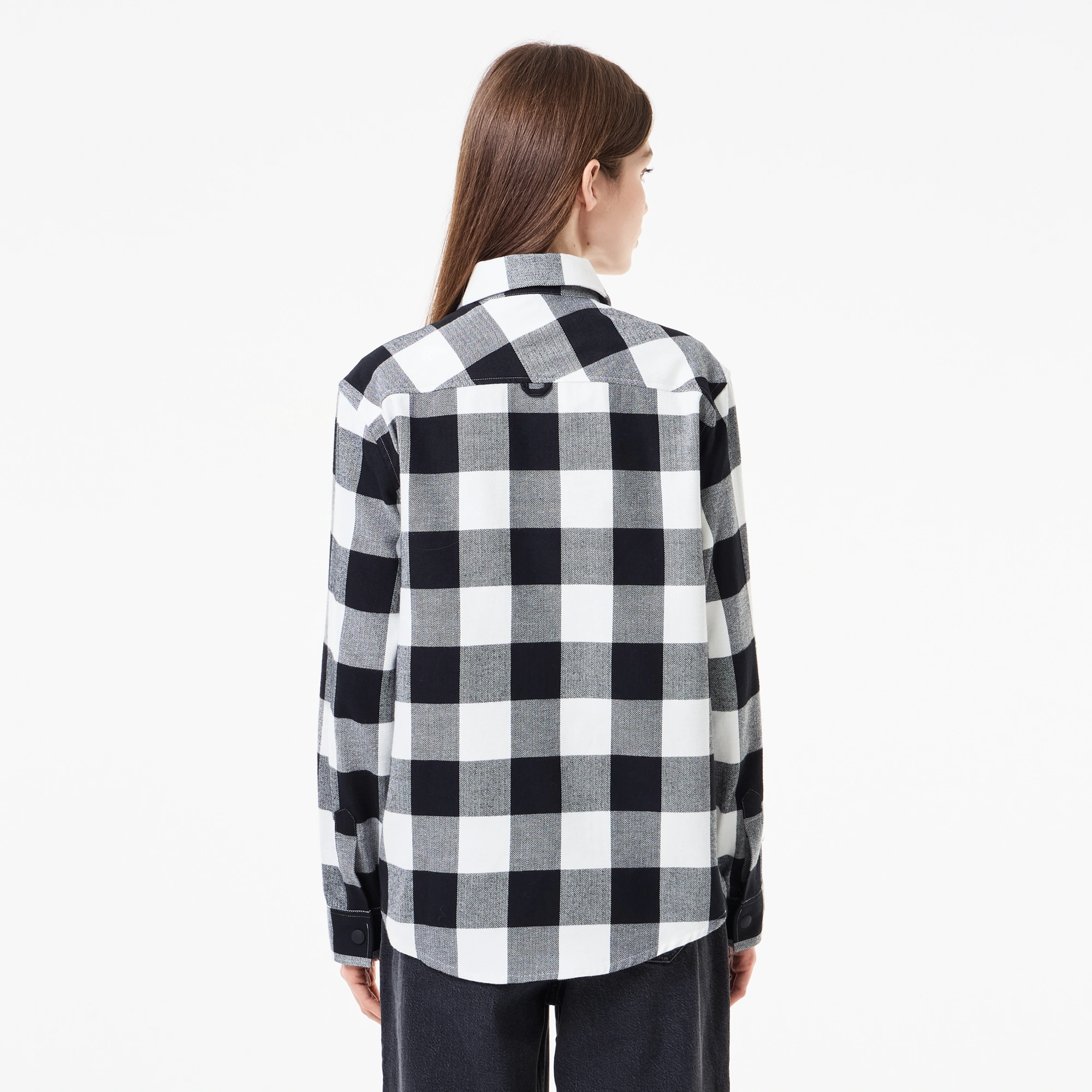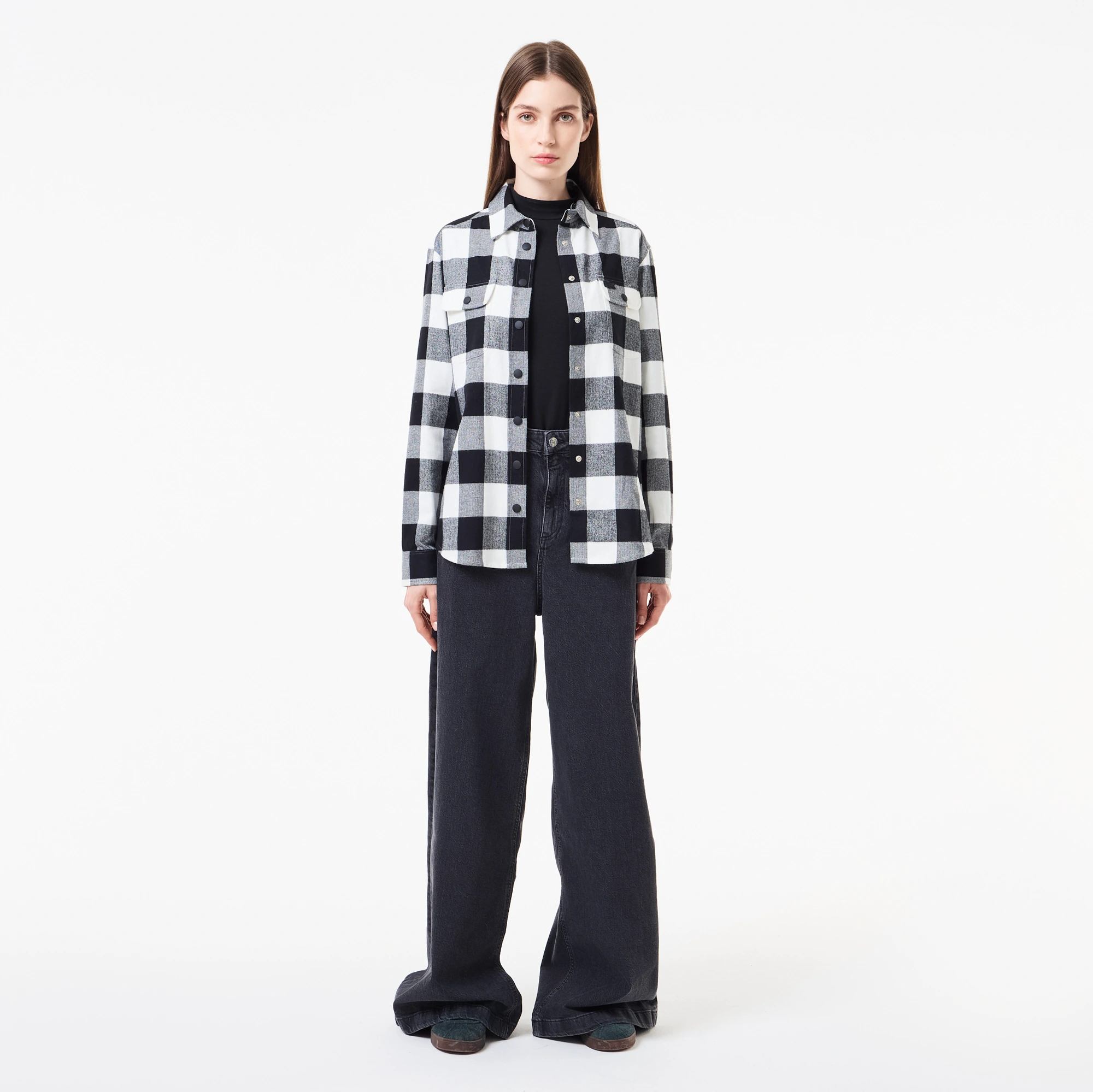 Классический воротник\на кнопках\накладные карманы на груди\в клетку\логотип в тон изделия на груди\материал: 100% хлопок\рост модели 178 см, размер одежды 36
