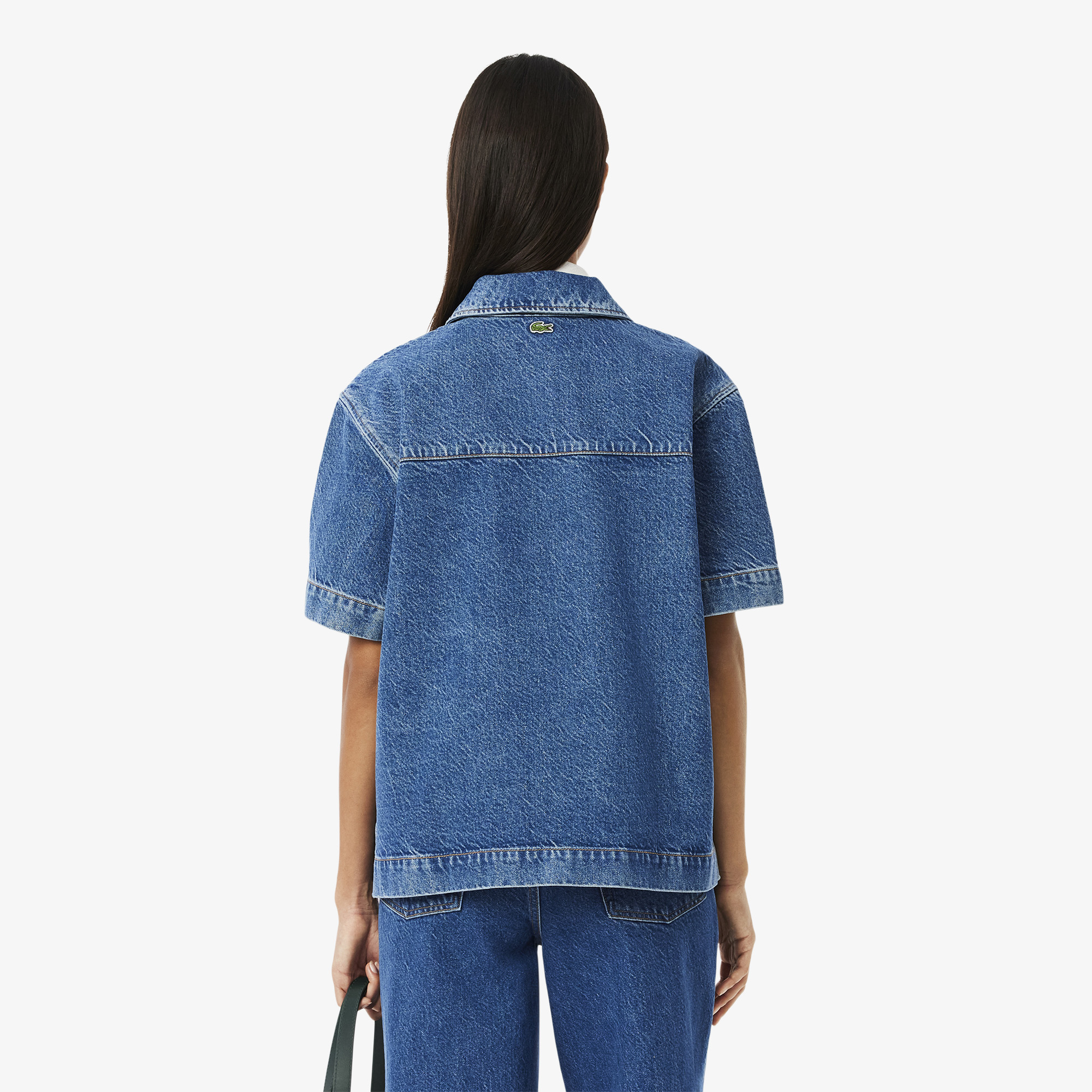 Джинсовая рубашка поло Oversize \ Джинсовая ткань из органического хлопка\Вышитый крокодил на нагрудном кармане \ Вышитый крокодил на спине \ Материал: 100% органический хлопок