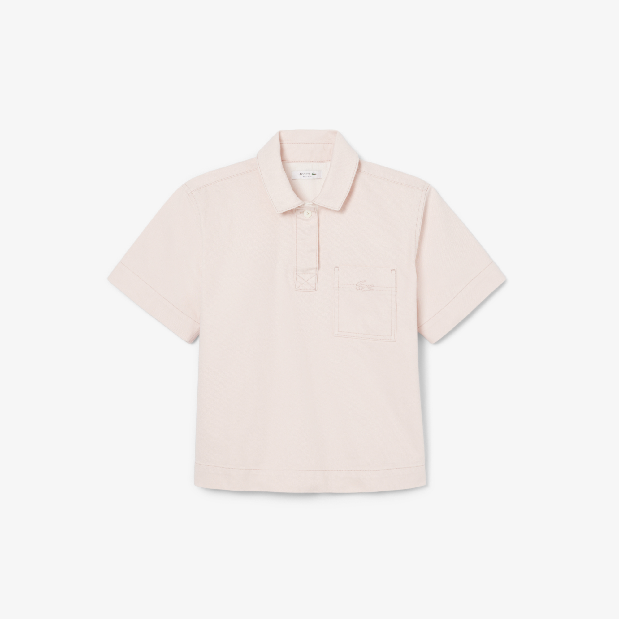 Джинсовая рубашка поло Oversize \ Джинсовая ткань из органического хлопка\Вышитый крокодил на нагрудном кармане \ Вышитый крокодил на спине \ Материал: 100% органический хлопок