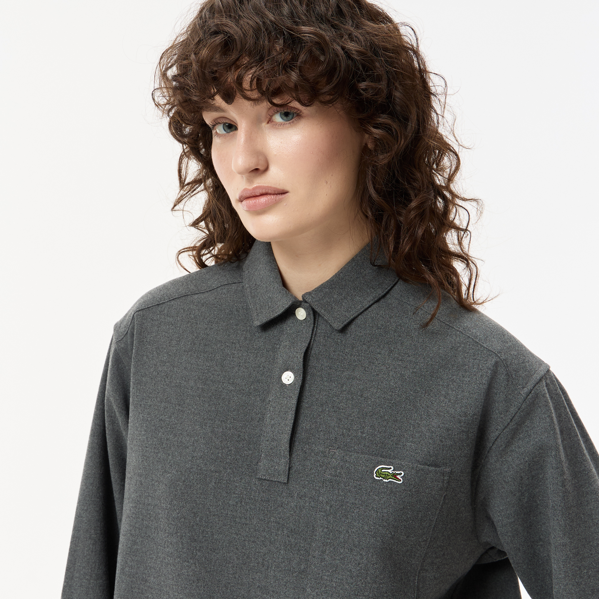 Фланелевая рубашка в стиле поло Oversize \ Эластичная фланель из смеси вискозы и полиэстера\ Накладной карман на груди \ Планка на двух пуговицах \ Вышитый логотип на нагрудном кармане \ Облегающий крой Oversize. Выберите на 1 размер меньше вашего обычног