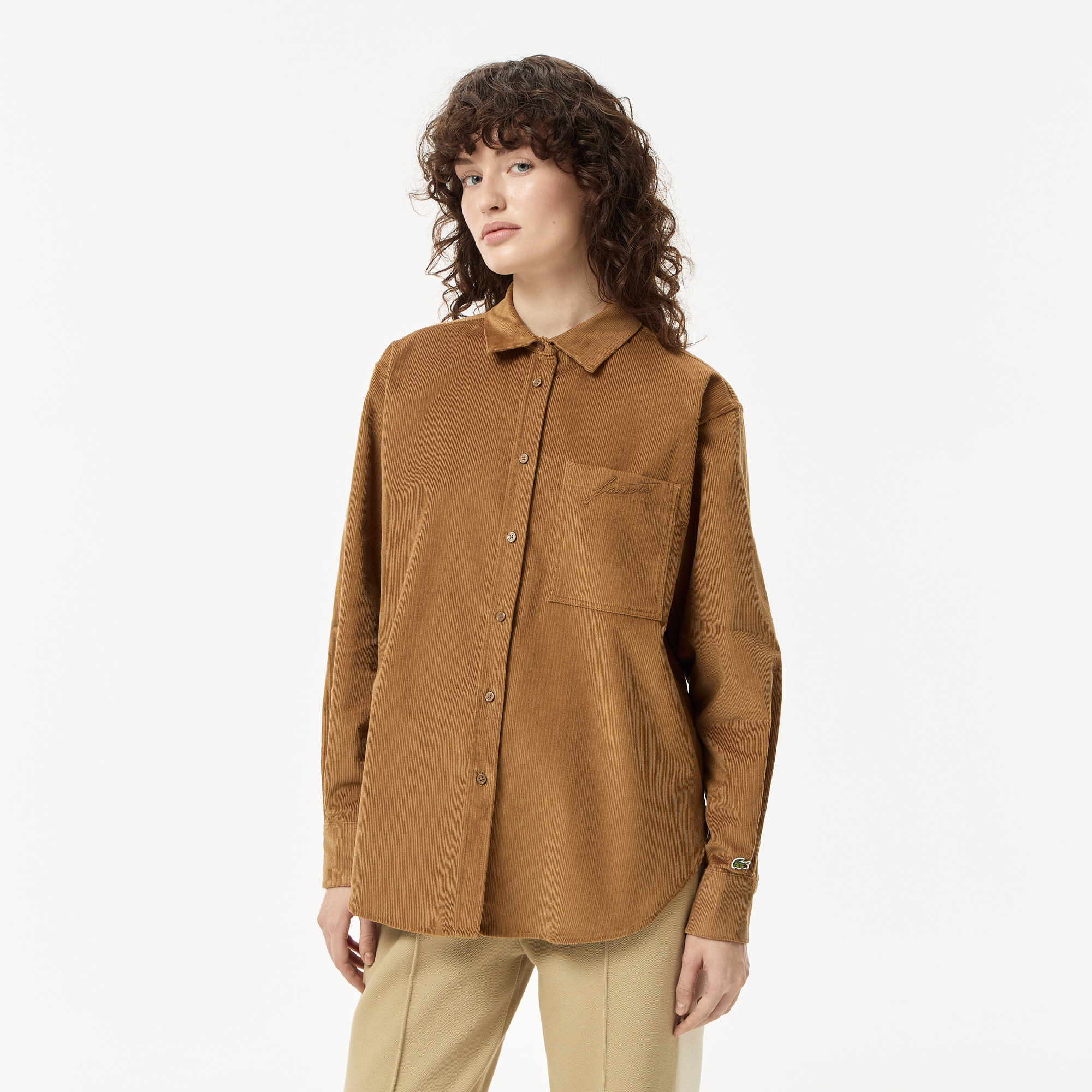 Верхняя рубашка из вельвета Oversize \ Хлопковый вельвет\ Нагрудный карман с вышивкой Lacoste в тон \ Вышитый логотип на рукаве \ Облегающий крой Oversize. Выберите на 1 размер меньше вашего обычного размера для более облегающего фасона. \ Материал: 100%