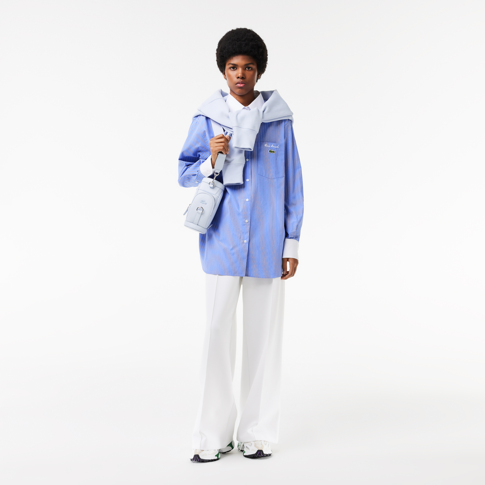 Длинная рубашка из поплина Oversize \ Хлопковый поплин \ Обычная посадка, прямой крой \ Классический воротник \ Складка на спине \ Вышитый логотип на нагрудном кармане \ Хлопковый поплин \ Классический крой, прямой крой \Классический воротник \ Складка н