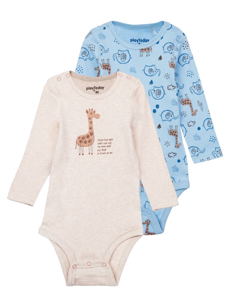 Боди с длинным рукавом из натурального хлопкового двойного трикотажа. 100% хлопок. Застежка на кнопки. 2 шт. в комплекте.