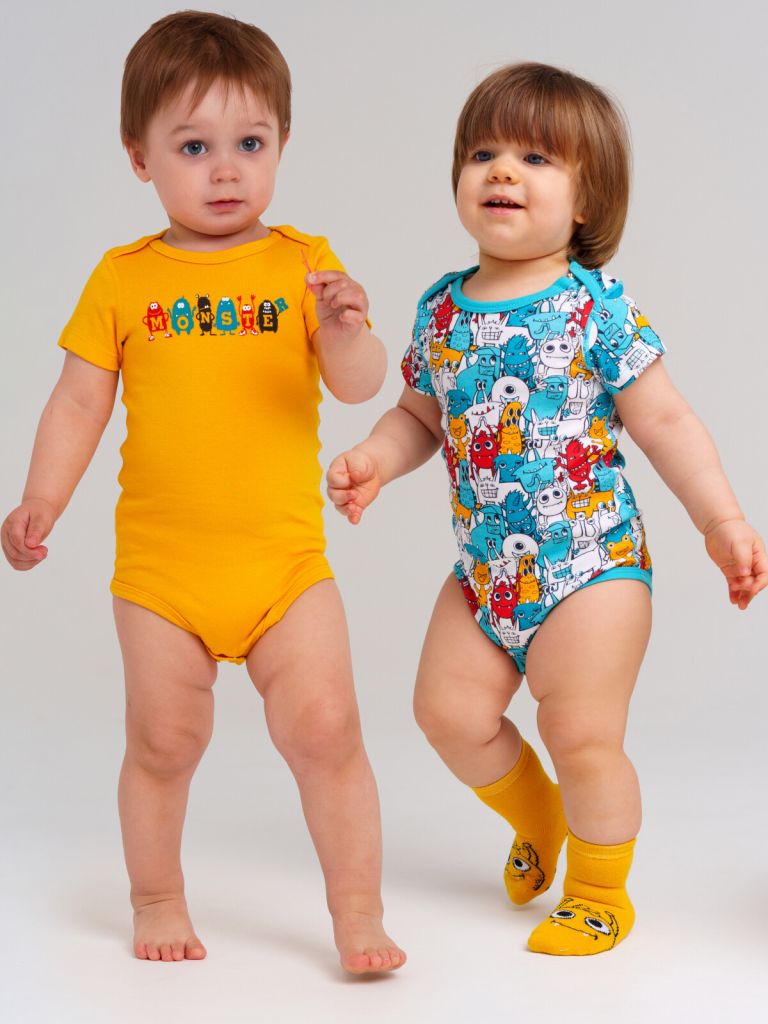 Боди с коротким рукавом из натурального хлопкового двойного трикотажа. 2 шт. в комплекте. 100% хлопок. Кнопки внизу – 2 ряда, боди растет вместе с малышом.