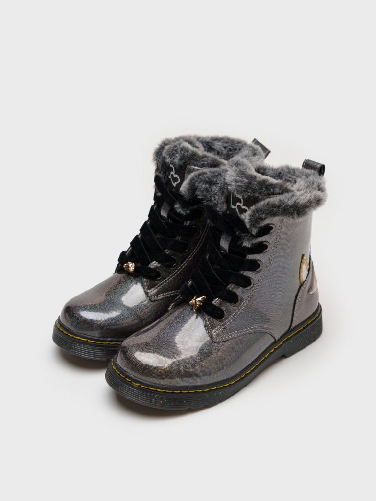 Ботинки детские демисезонные для девочки. Верх обуви выполнен из искусственной лаковой кожи с глитерным эффектом. Отделка искусственным мехом. Сзади вышит милый единорог • Подкладка и съемная стелька выполнены из войлока с высоким содержанием шерсти 80%. • Для основания стельки используется современный дышащий антибактериальный материал HI-POLY, в состав материала входят частички угля, который хорошо абсорбирует неприятный запах. • Формоустойчивый задник поддерживает стопу в правильном положении. • Эргономичная форма колодки обеспечивает правильное формирование стопы ребенка • Модель имеет бархатные шнурки, которые можно завязать красивым бантом, а пользоваться внутренней молнией для обувания • Подошва из терморезины с добавлением глитера очень гибкая, не скользит и устойчива к истиранию. Материал подошвы парфюмирован запахом жевательной резинки • Рекомендованный температурный режим ( зависит от активности ребенка и поддевы под обувь) ( зависит от активности ребенка и поддевы под обувь) от +10°С до 0°С. Модель из капсульной коллекции UNICORN KUROMI (ЮНИКОРН КОРОМИ). Соберите полный образ в едином стиле!