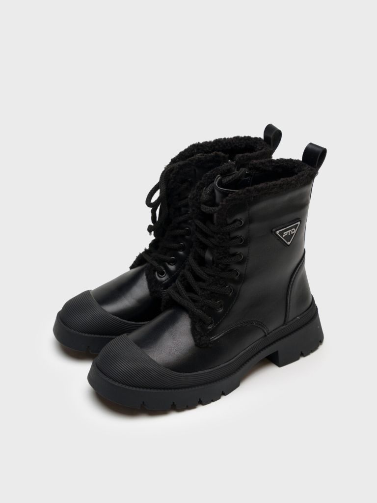 Ботинки зимние для девочки подростка. Стильные ботинки из искусственной кожи с отделкой искусственным мехом, на шнуровке. С внутренней стороны предусмотрена застежка-молния. Подкладка и съемная стелька выполнены из шерстяного меха 80%. Удобная колодка. Формоустойчивый задник поддерживает стопу в правильном положении. Подошва из терморезины гибкая, не скользит и устойчива к истиранию. Подошва имеет защиту носочной части. Рекомендованный температурный режим ( зависит от активности ребенка и поддевы под обувь) от 0°С до -15°С. Модель из капсульной коллекции PREPPY VIBE (ПРЕППИ ВАЙБ). Соберите полный образ в едином стиле!