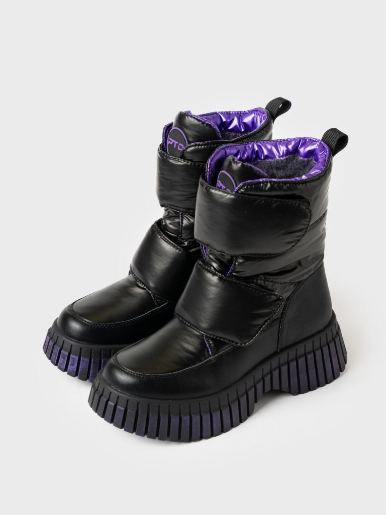 Сочетаются с дутыми куртками, пальто, комбинезонами и утеплёнными леггинсами или джинсами. Массивная подошва и черно-фиолетовый дизайн добавят яркий акцент к любому образу.