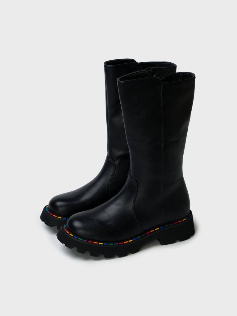 Совет по стилю: сочетайте такие нарядные черные сапоги для школьницы с утеплёнными леггинсами, джинсами или юбками и колготками от PlayToday. Модель отлично вписывается в образ на каждый день и подходит под школьную форму.