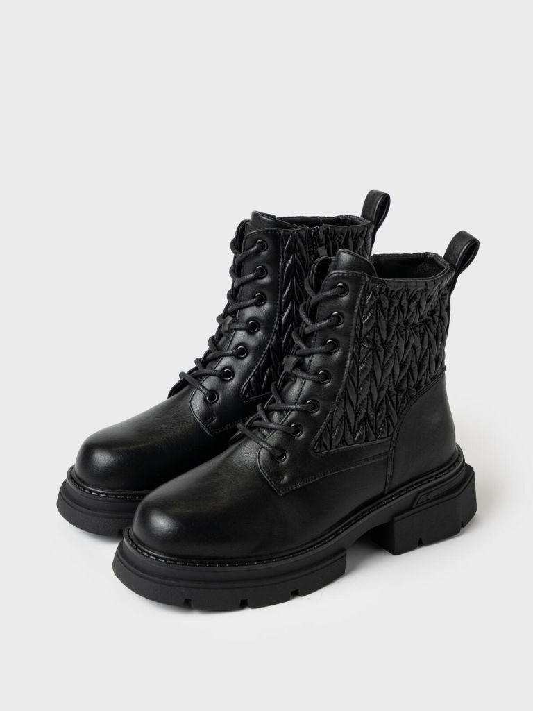 + верх из прочной искусственной кожи с мягким стёганым голенищем с эффектом вязки — обеспечивает надёжную защиту от холода и придаёт образу модный акцент