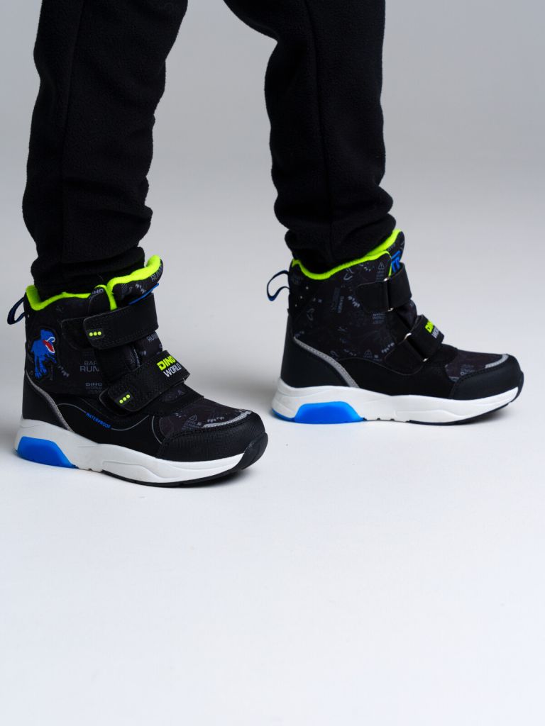 Конструкция верха изготовлена с использованием мембранных технологий. Усиленная защита носка и пятки специальными материалами. Подкладка и стелька выполнены из шерстяного меха 80%. Трехслойная стелька с фольгой, которая обеспечивает сохранение тепла в течение длительного времени. Формоустойчивый задник поддерживает стопу в правильном положении. Подошва имеет противоскользящий протектор. Удобная застежка-липучка. Модель со светодиодной подсветкой подошвы позволяет хорошо видеть ребенка даже в темное время суток. Рекомендованный температурный режим от 0°С до -20°С.