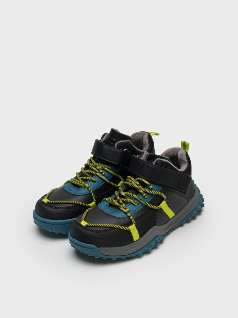 Ботинки на липучках для мальчика подростка. Верх обуви выполнен из искусственной кожи, обладающей высокими эксплуатационными свойствами, и мягкого текстиля по верхнему канту • Носочная часть усилены специальным защитным материалом.