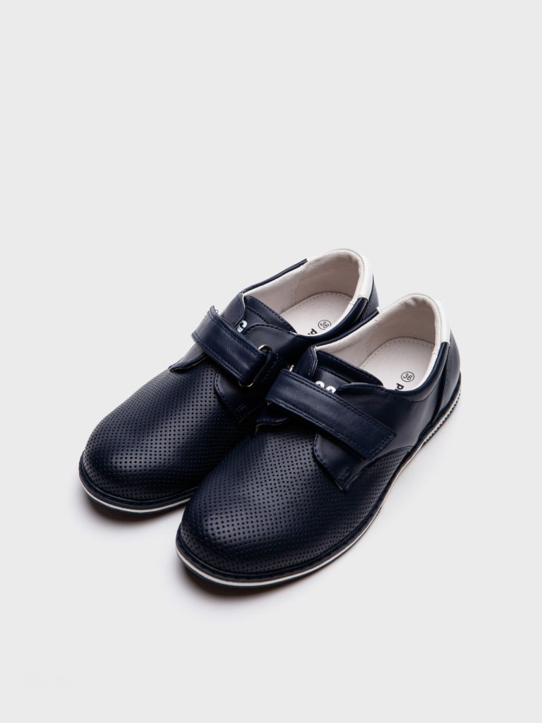 Модные полуботинки для мальчика подростка. Верх обуви выполнен из искусственной кожи, обладающей высокими эксплуатационными свойствами. Добавление перфорации делает обувь более воздухопроницаемой. Подкладка выполнена из натуральной кожи. Кожаная стелька с анатомическим элементом обеспечивает правильную нагрузку на стопу. Формоустойчивый задник поддерживает стопу в правильном положении. Удобная застежка-липучка дают возможность регулировать обувь на любой подъем. Подошва не скользит и устойчива к истиранию. Туфли для мальчика школьника отлично подойдут как сменка в школу, так и для и для прогулок: весна, лето, осень.