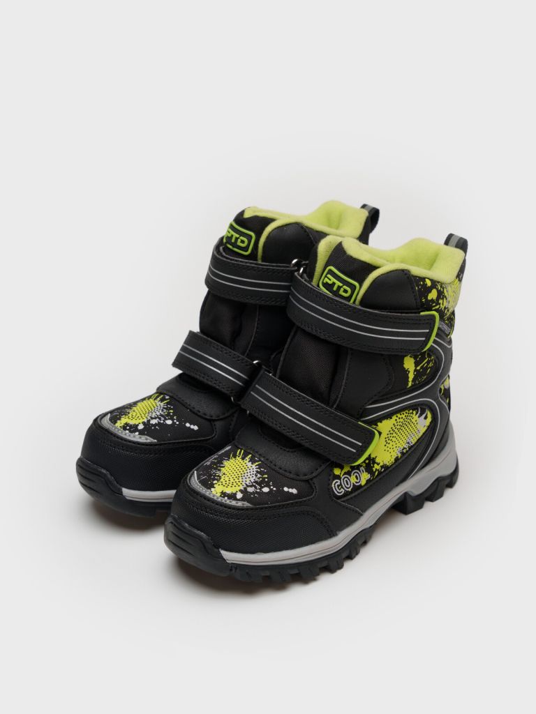 Ботинки детские зимние с мембраной для мальчика. Конструкция верха изготовлена с использованием мембранных технологий. Усиленная защита носка и пятки специальными материалами. Подкладка и стелька выполнены из шерстяного меха 80%. Трехслойная стелька с фольгой, которая обеспечивает сохранение тепла в течение длительного времени. Формоустойчивый задник поддерживает стопу в правильном положении. Подошва имеет противоскользящий протектор. Удобная застежка-липучка. Рекомендованный температурный режим ( зависит от активности ребенка и поддевы под обувь) ( зависит от активности ребенка и поддевы под обувь) от 0°С до -20°С.