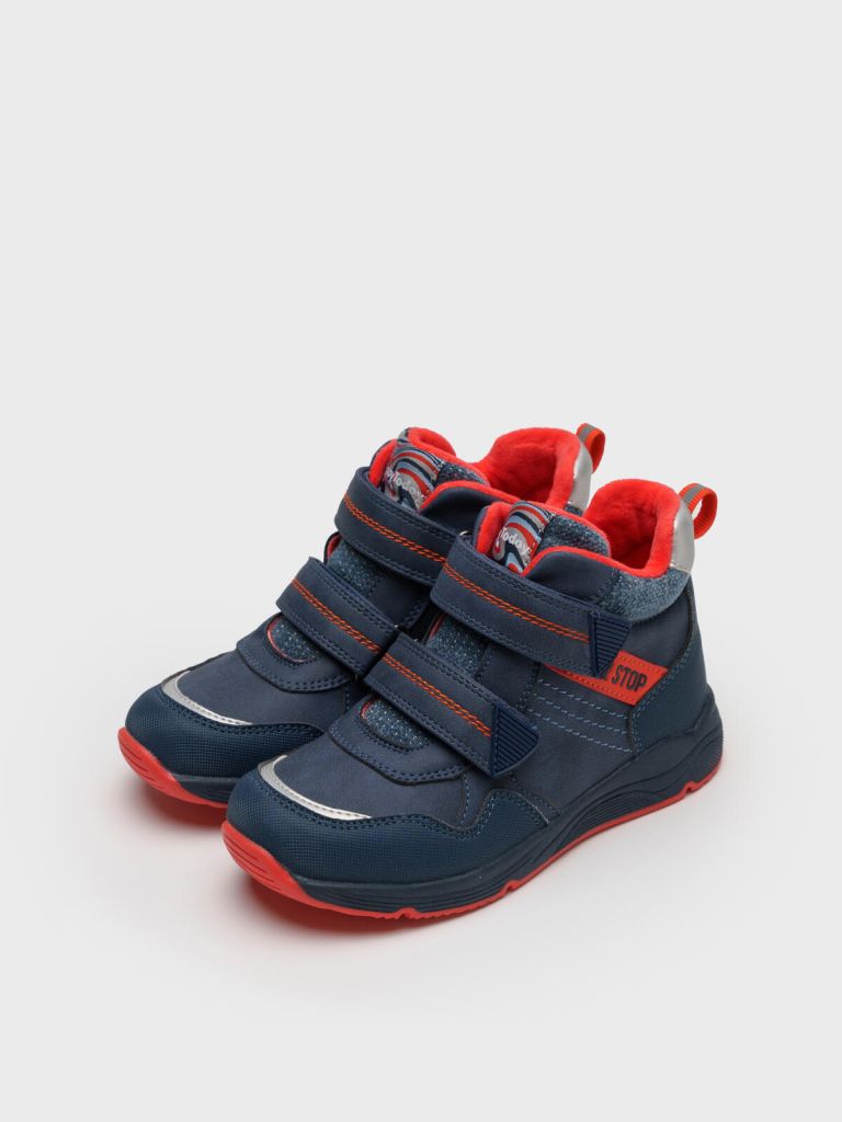 Ботинки детские демисезонные для мальчика. Верх обуви выполнен из искусственной кожи, обладающей высокими эксплуатационными свойствами, и дышащего текстиля в качестве отделки. Носочная и пяточная часть усилены специальным защитным материалом. Обувь обработана водоотталкивающим составом. • Сзади имеется тесьма со светоотражающим элементом • Подкладка и съемная стелька выполнены из мягкого флиса. • Для основания стельки используется современный дышащий антибактериальный материал HI-POLY, в состав материала входят частички угля, который хорошо абсорбирует неприятный запах. • Формоустойчивый задник поддерживает стопу в правильном положении. • Эргономичная форма колодки обеспечивает правильное формирование стопы ребенка • Две липучки создают удобство при обувании • Подошва из терморезины очень гибкая. Материал подошвы парфюмирован запахом жевательной резинки • Рекомендованный температурный режим ( зависит от активности ребенка и поддевы под обувь) ( зависит от активности ребенка и поддевы под обувь) от +10°С до 0°С. Модель из капсульной коллекции DINO CLUB (ДИНО КЛАБ). Соберите полный образ в едином стиле!