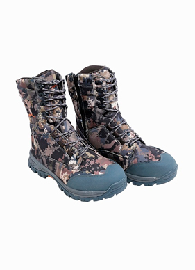 Ботинки Forester-800 Timber — это самый утеплённый вариант в линейке зимней обуви Remington, созданный для эксплуатации в условиях сильных морозов и повышенной влажности. Благодаря утеплителю Thinsulate плотностью 800 г, ботинки выдерживают температуру до –40 °C, обеспечивая тепло даже при продолжительном пребывании на морозе. Верх модели выполнен из прочной полиэстеровой ткани, устойчива к износу и разрывам. Зоны повышенной нагрузки усилены прорезиненными вставками, а водонепроницаемая подкладка эффективно защищает от проникновения влаги. Подошва состоит из двух слоёв: EVA-материала для амортизации и внешнего резинового слоя с глубоким протектором — для уверенного сцепления с заснеженными и обледенелыми поверхностями. Боковая молния упрощает надевание, а регулируемая шнуровка позволяет точно подогнать ботинок по ноге. Цвет Timber с камуфляжным рисунком помогает органично слиться с окружающей средой.Преимущества:Мембрана Waterproof: влагозащита и комфорт в условиях снега и талой воды.Удобство: боковая молния, шнуровка, амортизация EVA, усиленный мыс.Функциональность: утеплитель 800g Thinsulate, защита от промокания, устойчивая подошва.Цвет Timber: камуфляж под зимний лес, совместим с охотничьей экипировкой.Температурный режим: до –40 °C.