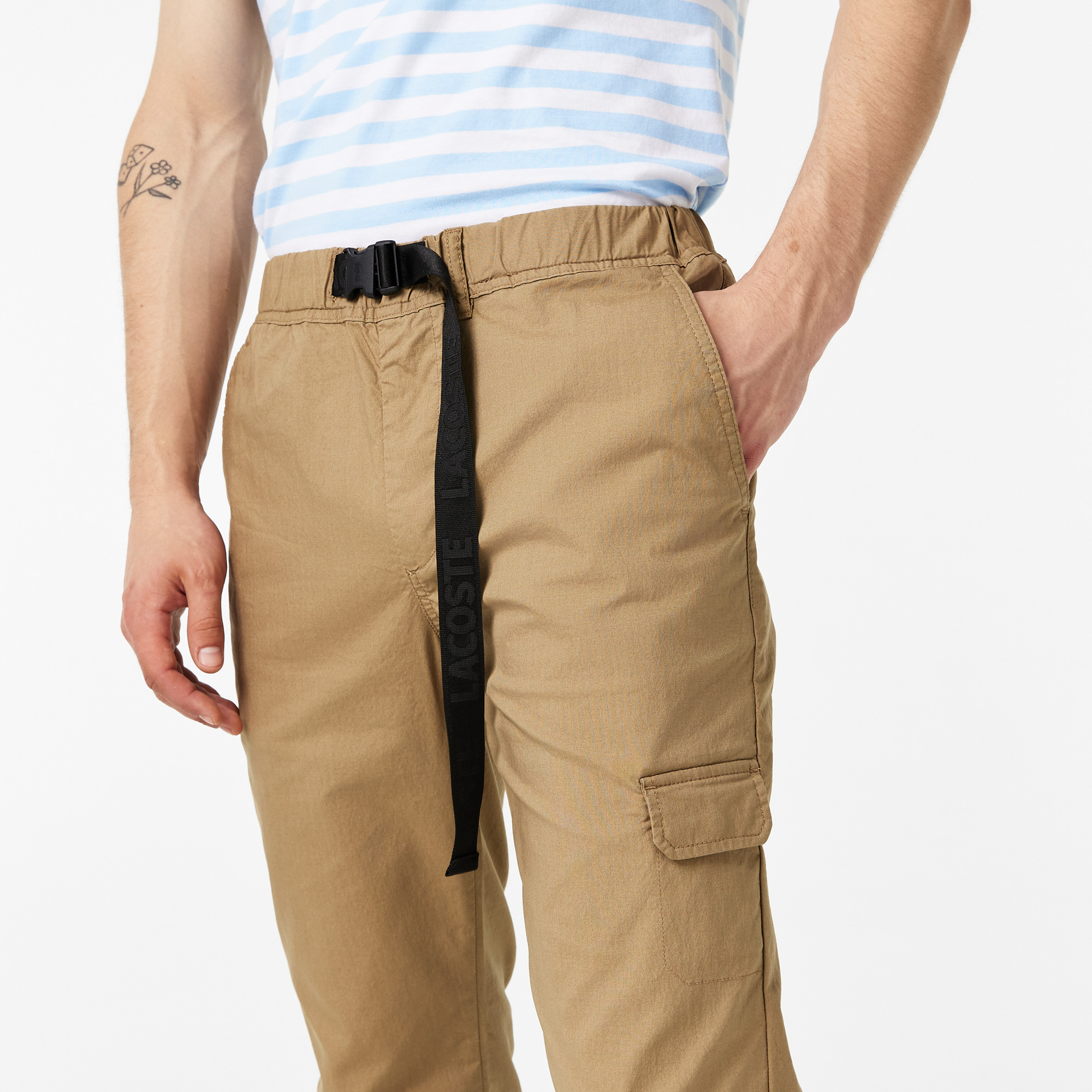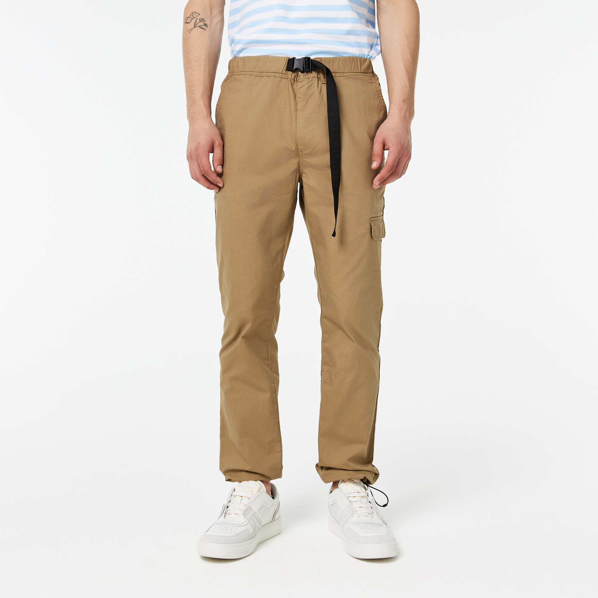 Пояс с регулируемым ремнем\Манжеты с регулируемой кулиской\Прорезные карманы сбоку\Карманы сзади застегиваются на кнопку\Вышитый логотип в тон изделия\Материал: 63% хлопок 34% полиамид 3% эластан