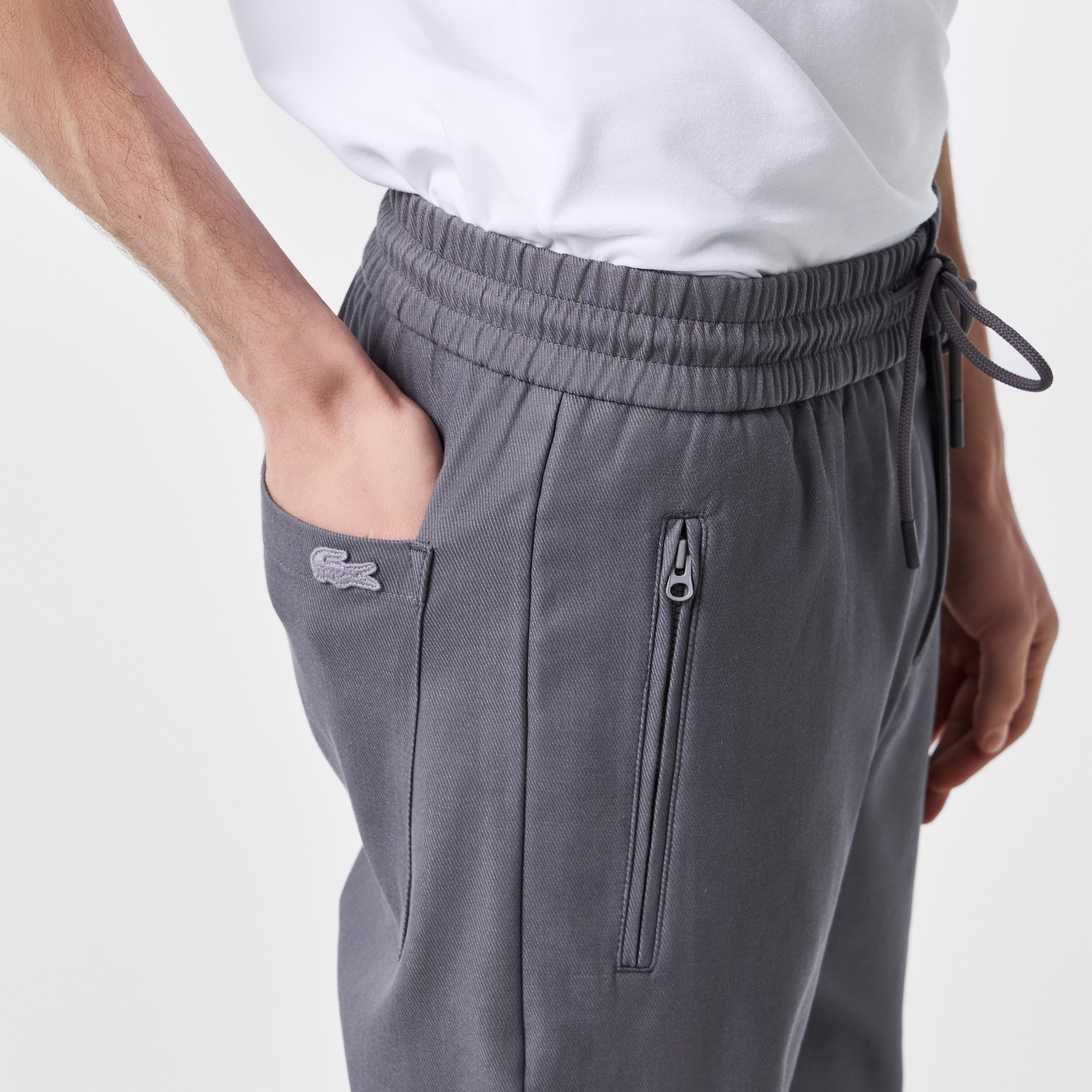 Эластичный пояс с кулиской\Эластичные манжеты\Прорезные карманы спереди\Накладные карманы сзади\Логотип с тон изделия сзади\Материал: 71% хлопок 22% модал 7% эластан