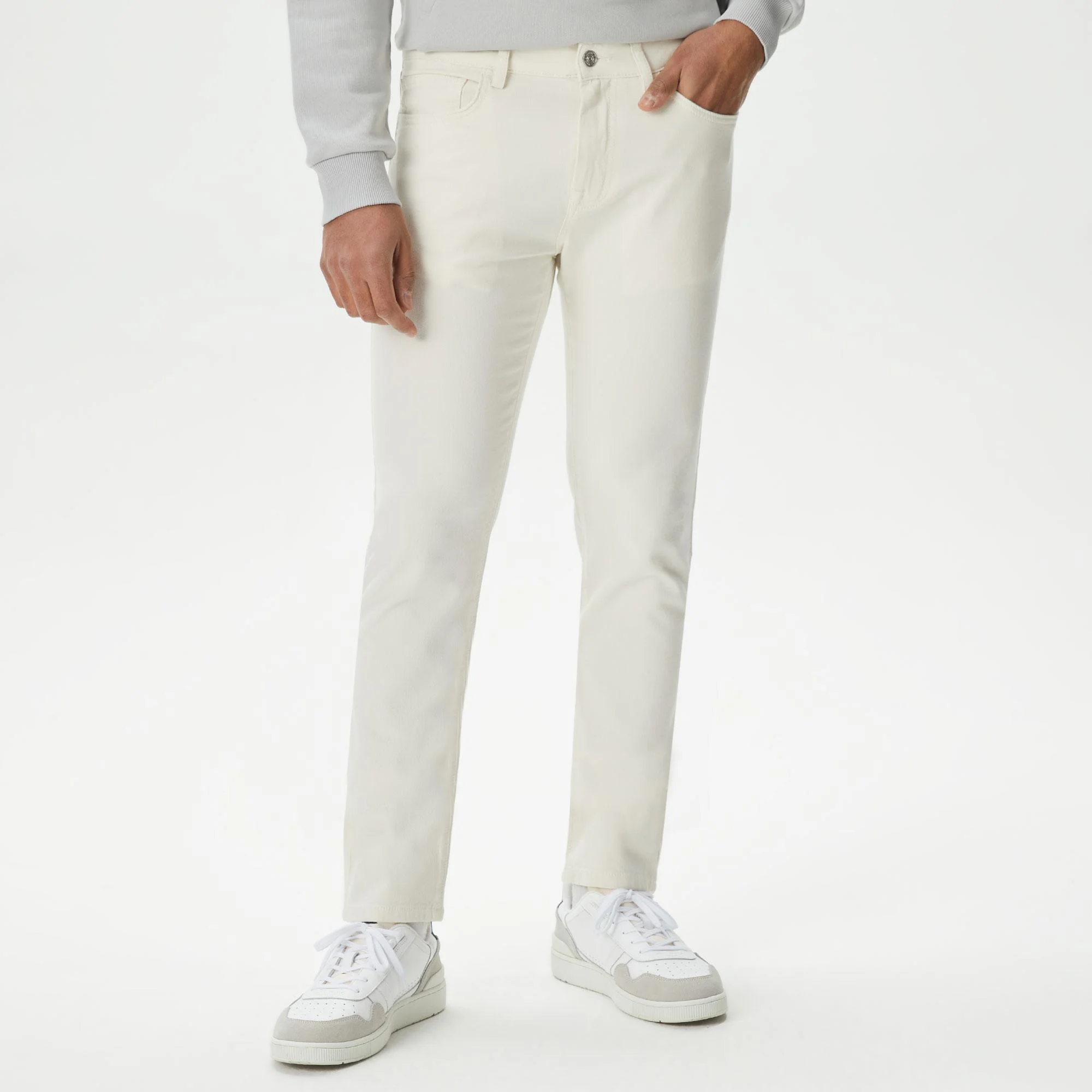 Пять карманов\Логотип в тон изделия на заднем кармане\Материал: верх-56% вискоза 41% хлопок 3% эластан\Рост модели 187 см, размер одежды 32