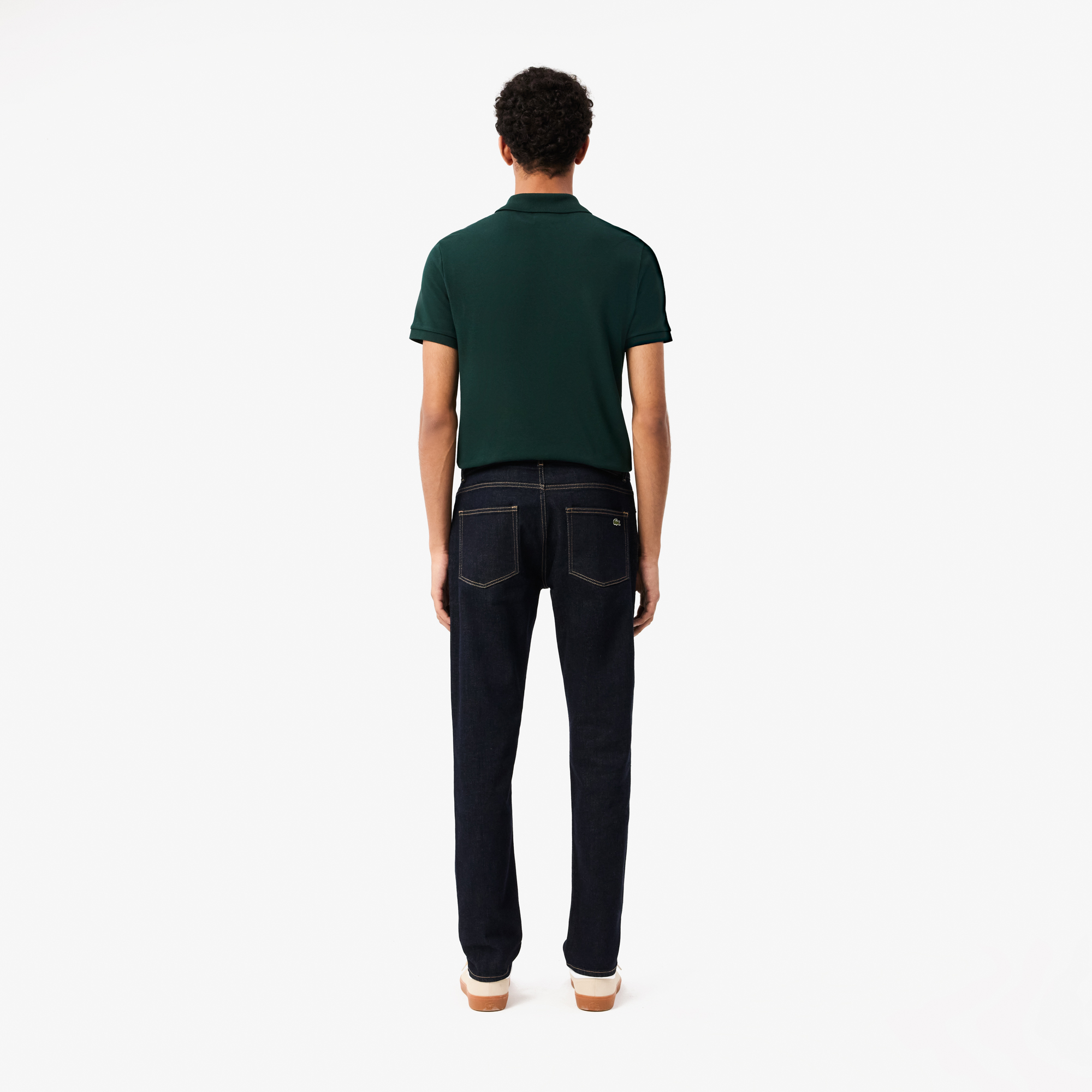 Джинсы цвета индиго с 5 карманами облегающий крой \ Эластичный деним из органического хлопка \ Приталенный крой \ Ширинка на молнии и пуговицах, шлевки для ремня \ Этикетка с фирменной деталью debossed на поясе \ Вышитый логотип на заднем правом кармане