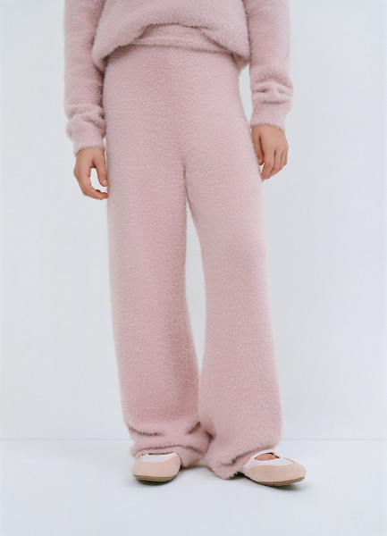Широкие брюки с пушистым эффектом для девочек, Розовый