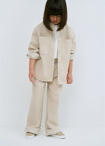 Брюки из сатина с карго-карманами для девочек, Бежевый