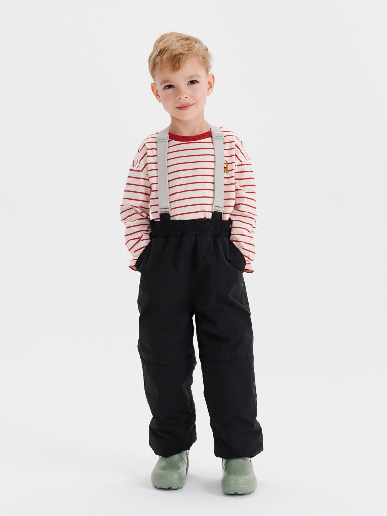 Правильная высокая посадка и свободный крой обеспечивают комфорт, а ветрозащитная и водоотталкивающая ткань защищает от продувания и влаги. Зона колен усилена дополнительной износостойкой тканью. Брюки деликатно садятся на любую фигуру благодаря регулируемой утяжке на поясе, а съёмные регулируемые подтяжки исключат сползание даже при активных играх.