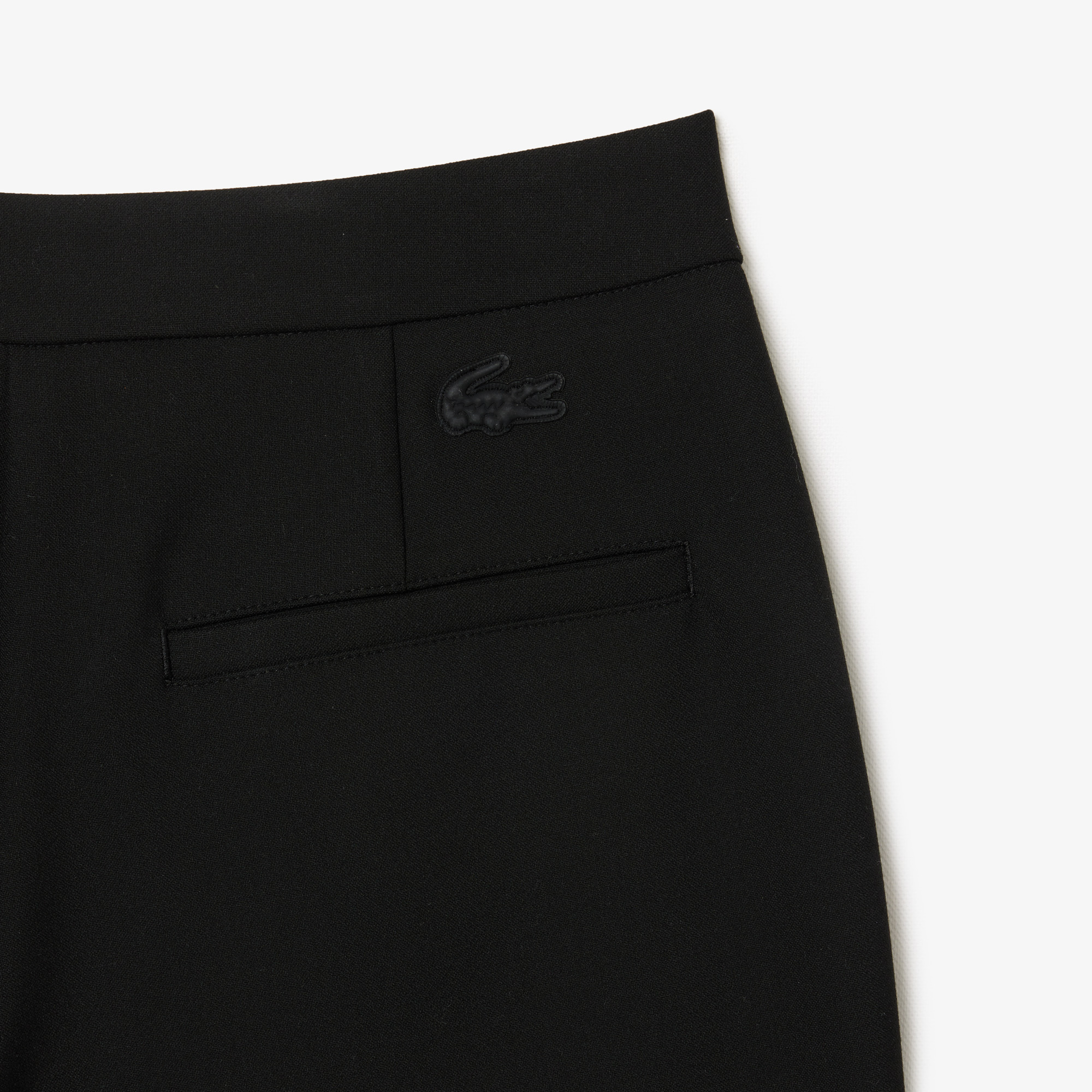 расклешенный крой\Стрелки спереди\Прорезные карманы\Логотип в тон изделия\Материал: 49% полиэстер 25% переработанный полиэстер 19% вискоза 7% эластан\Рост модели 174 см, размер одежды 36