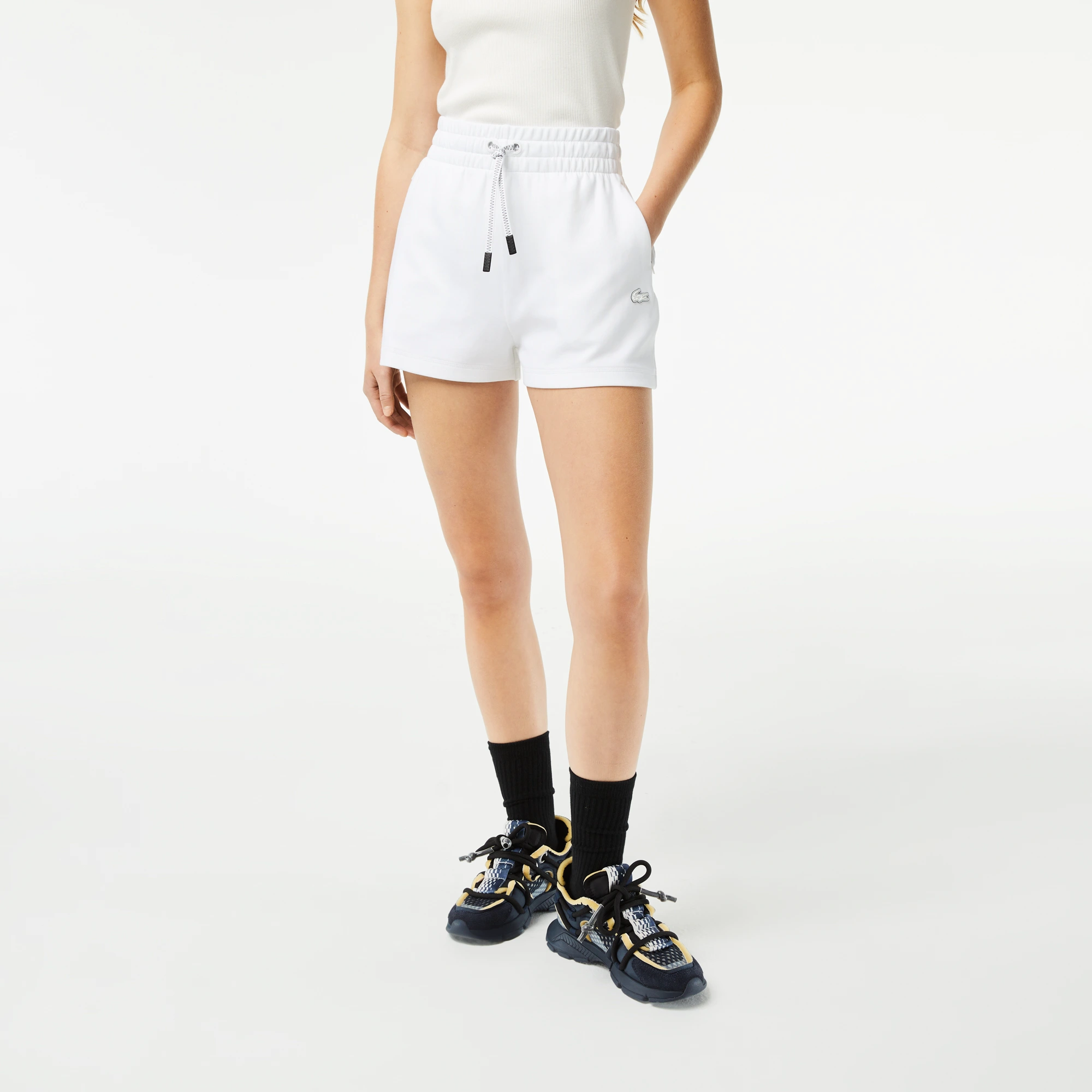 Шорты из хлопчатобумажного джерси \ Пояс с завязками \ Карманы, один с зажимом для ключей \ Принт на спине \ Силиконовый значок в виде крокодила \ Регулируемая кулиска\Карманы на молнии\Логотип в тон изделия\Материал: 77% хлопок 18% полиэстер 5% эластан