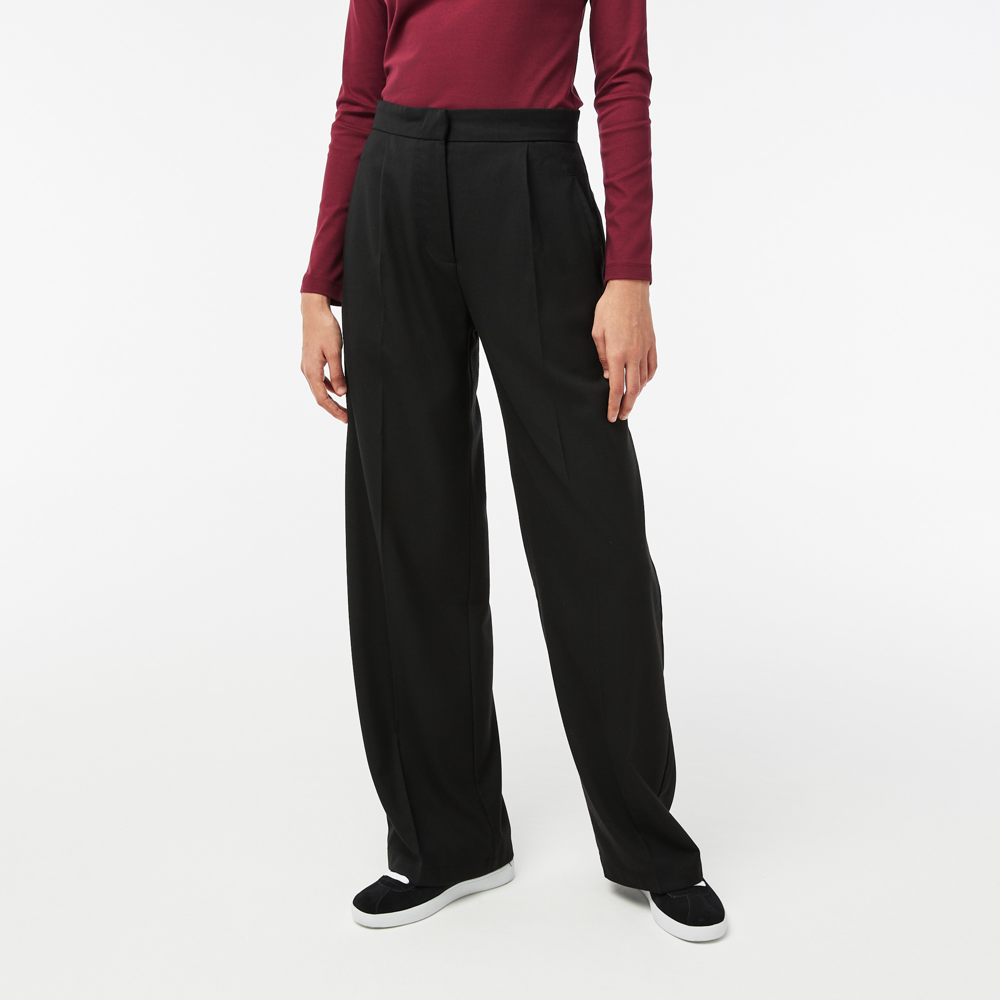 Прорезные карманы\Стрелки спереди и сзади\Логотип в тон изделия сзади\Материал: 57% полиэстер 22% шерсть 18% вискоза 3% эластан
