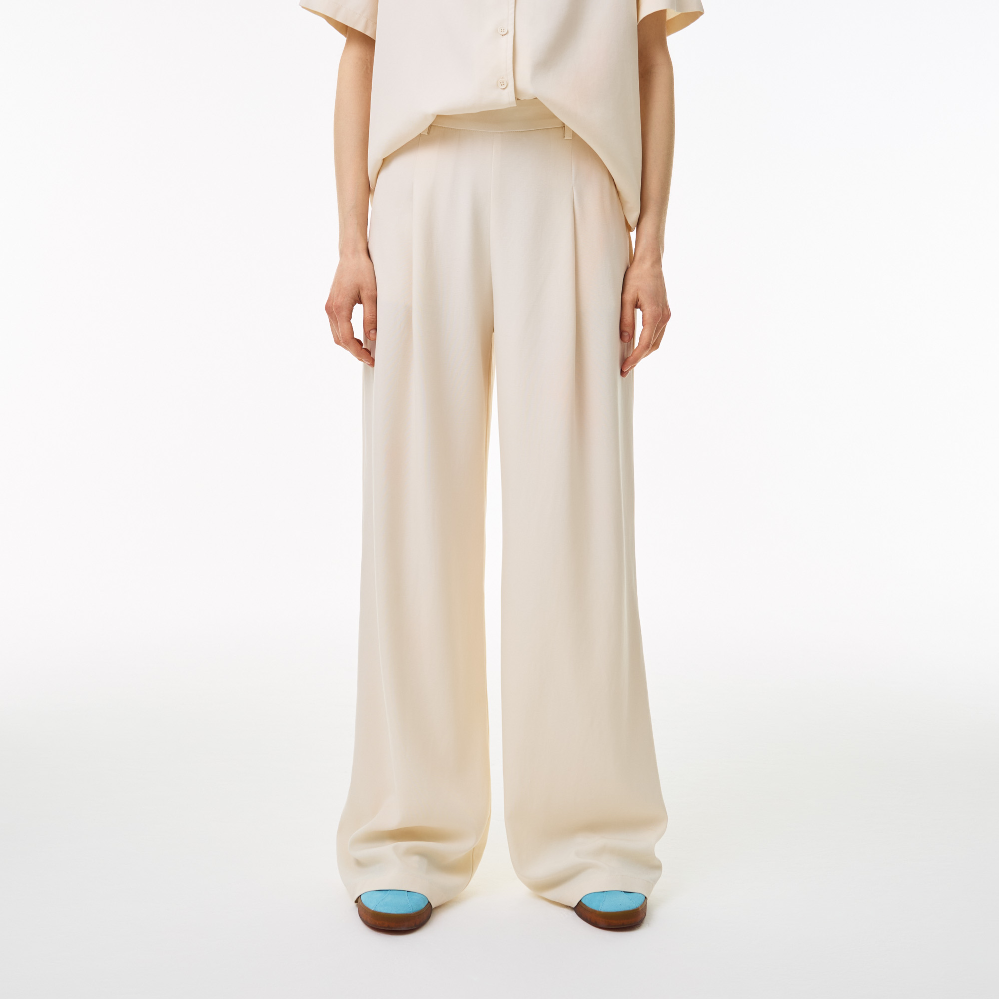 Высокая посадка\Прорезные карманы\Логотип в тон изделия\Материал:верх-68% тенсель 32% полиэстер\Рост модели 174 см, размер одежды 36