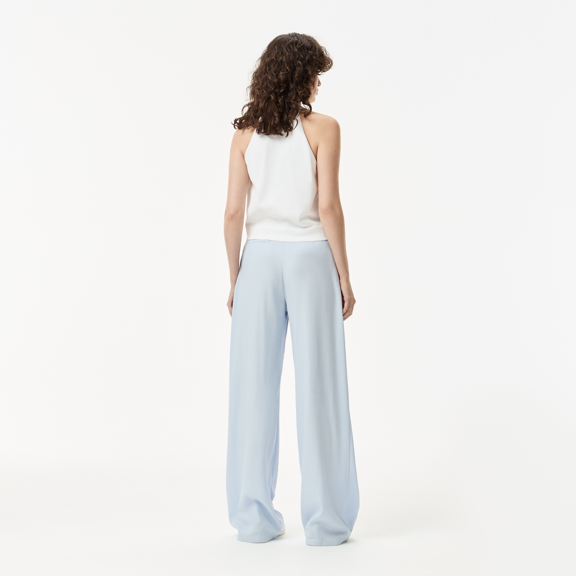 Высокая посадка\Прорезные карманы\Логотип в тон изделия\Материал:верх-68% тенсель 32% полиэстер\Рост модели 174 см, размер одежды 36