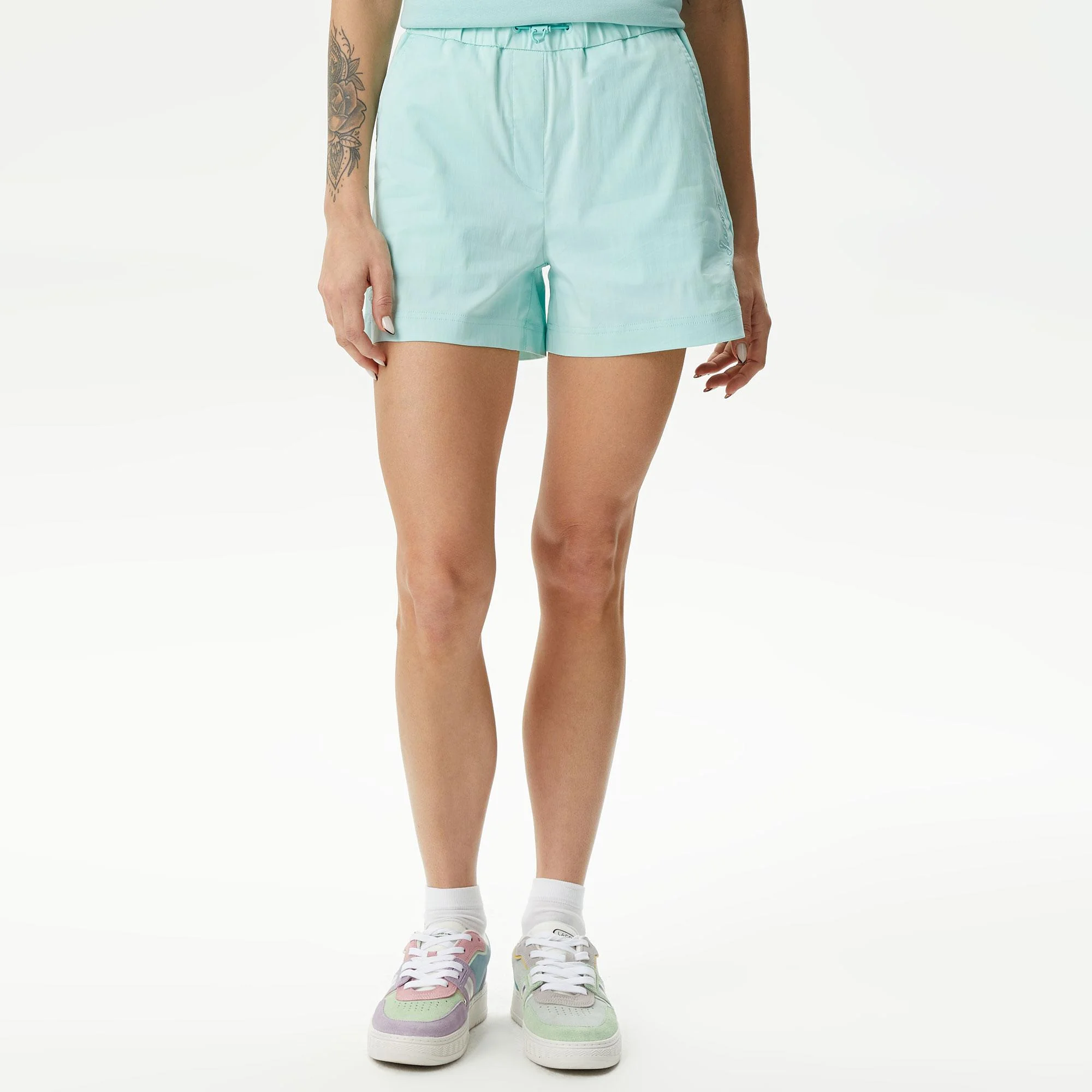 Пояс с регулируемой кулиской\Прорезные карманы\Напись "Rene Lacoste" сбоку\Логотип в тон изделия на нижнем крае\Материал: верх-67% хлопок 30% полиамид 3% эластан\Рост модели 174 см, размер одежды 36