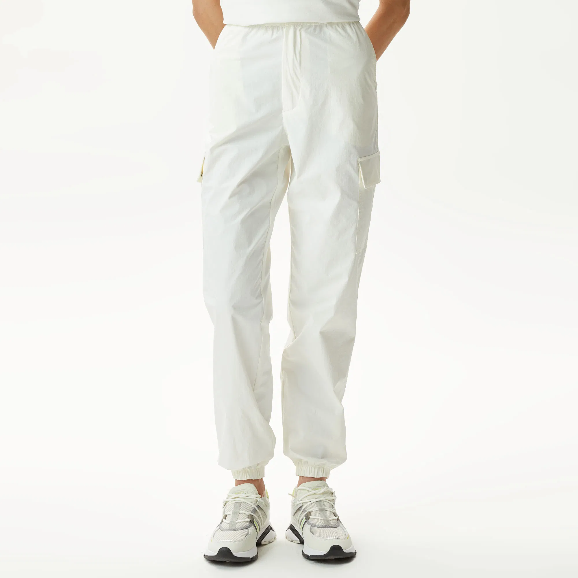 Гофрированный пояс на кнопке\Прорезные и накладные карманы\Эластичная резинка на манжетах\Логотип в тон изделия\Материал: верх-88% полиамид 12% эластан\Рост модели 174 см, размер одежды 36