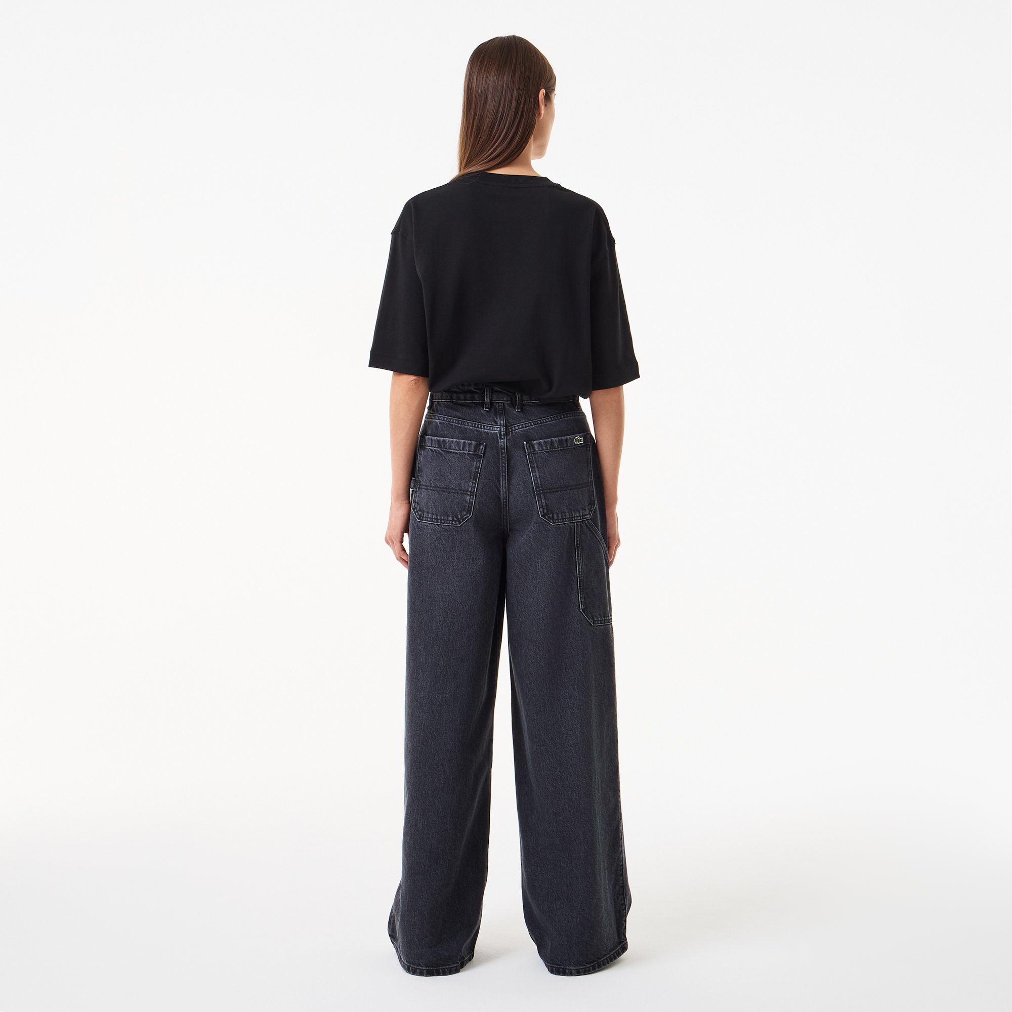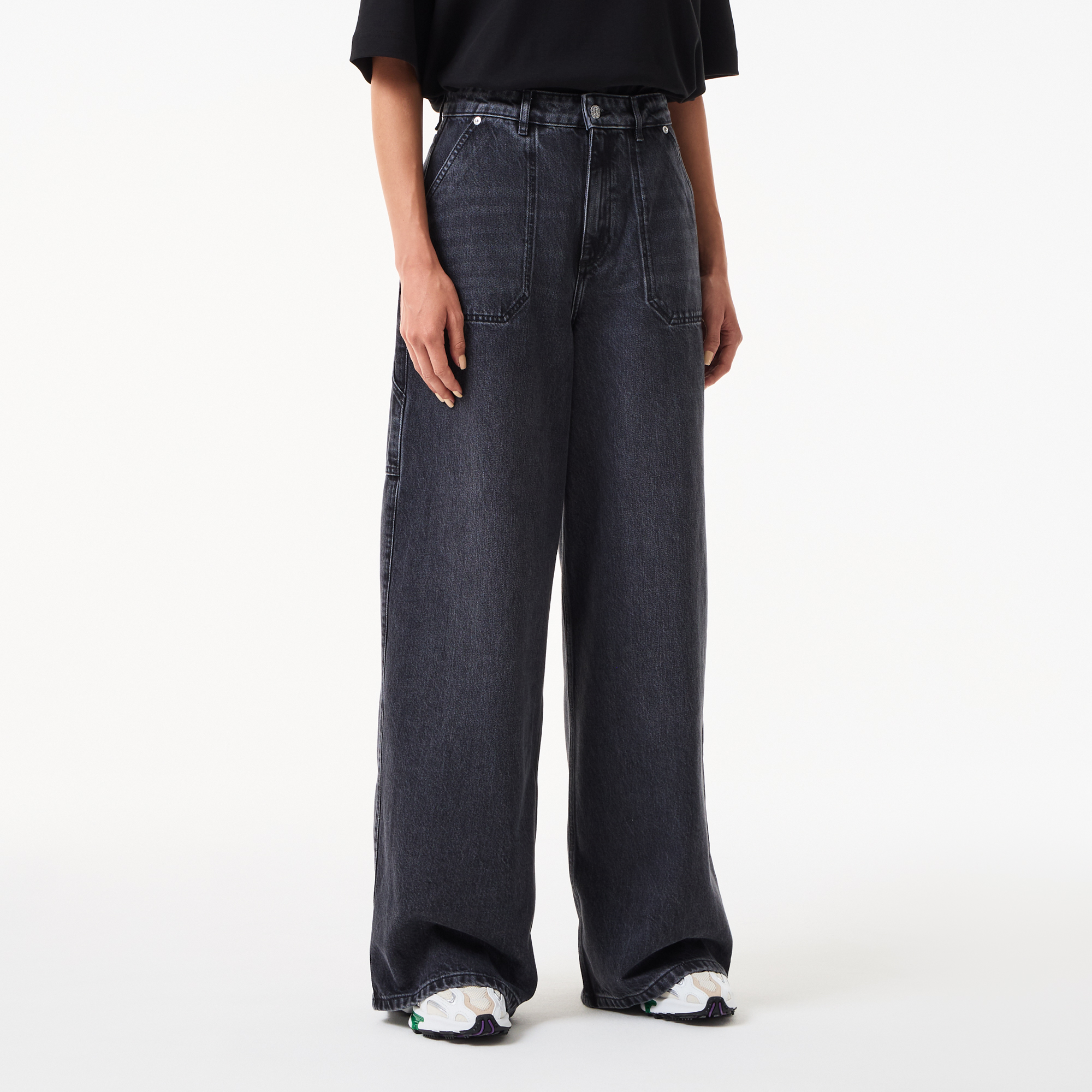 Джинсы палаццо\накладные карманы\логотип сзади\материал: 60% органический хлопок 40% лиоцелл\рост модели 174 см, размер одежды 36