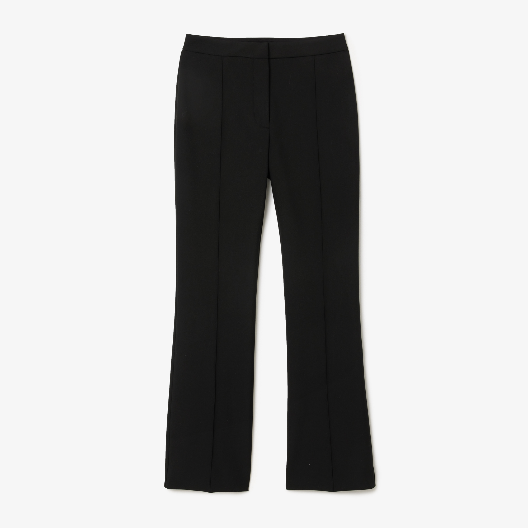 Брюки-клеш с высокой талией \ Смесь хлопка и переработанного полиэстера \ Ширинка на молнии \ Боковые карманы \ Искусственные карманы сзади \Логотип крокодила под поясом \ расклешенный крой\Стрелки спереди\Прорезные карманы\Логотип в тон изделия\Материа