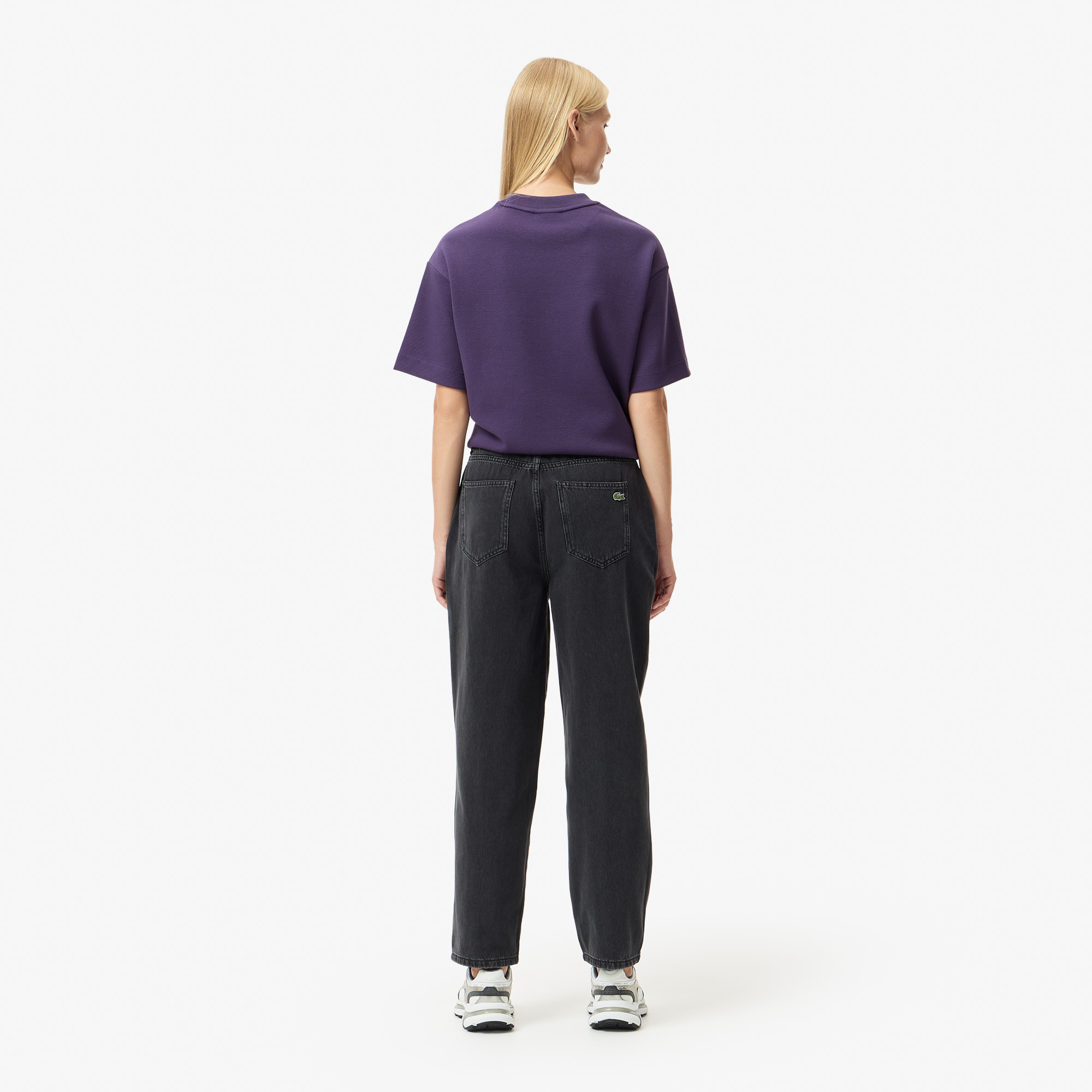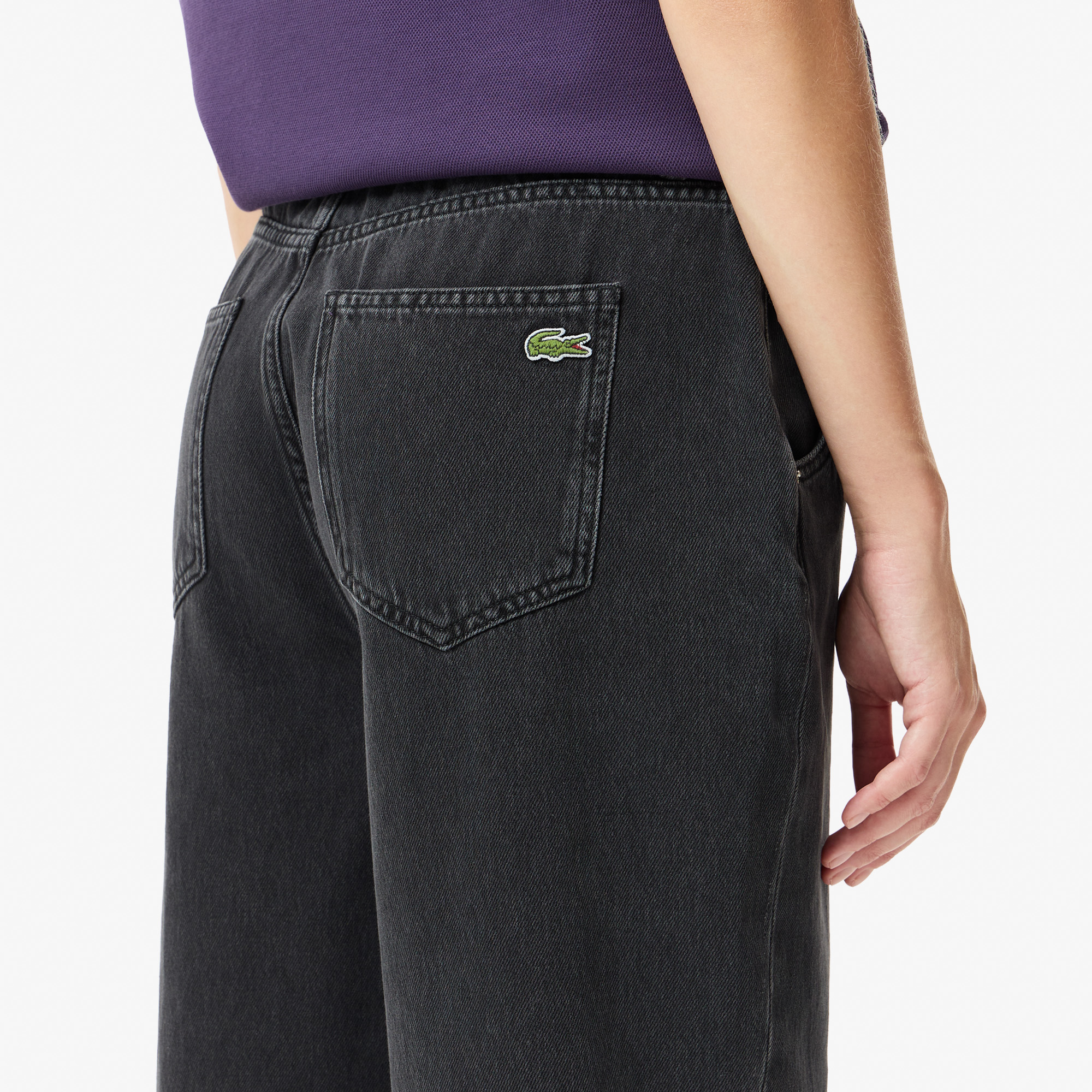 Свободный крой\ Структура денима\Детали боковых и задних карманов \ Зеленый логотип крокодила на заднем кармане\ Материал: 100% хлопок \Рост модели: 175 см, Размер: 26