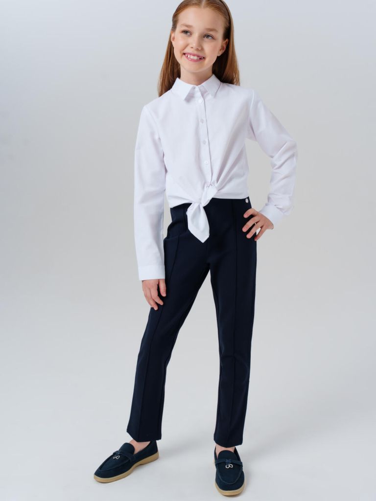 Школьные трикотажные темно-синие брюки для девочки подростка от PlayToday — стильный и практичный выбор для школы, который сочетает комфорт, элегантный силуэт и удобство на каждый день. Зауженный крой, мягкая ткань и идеальная посадка делают эти классические подростковые штаны отличной базой школьного гардероба.