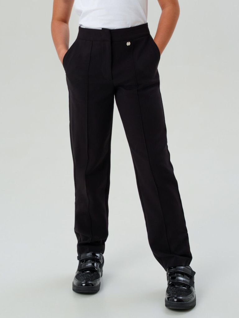 Классические текстильные чёрные школьные брюки non iron для девочки подростка от PlayToday — идеальный выбор для повседневной носки, школьных мероприятий и любых активных будней. Эта универсальная модель с посадкой regular fit дарит свободу движений и всегда поддерживает аккуратный внешний вид благодаря современной ткани non-iron.