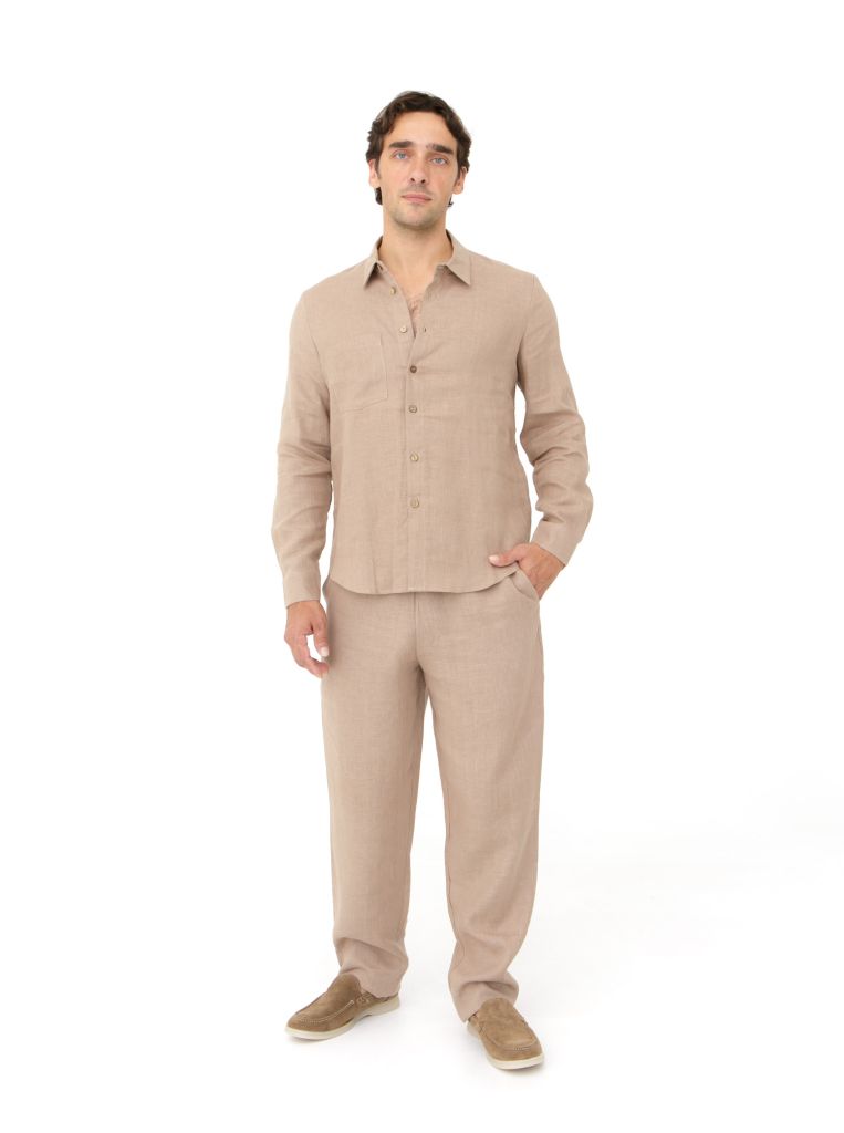 Льняные брюки мужские мокко — идеальное сочетание летнего комфорта и сдержанной элегантности. Сшитые из 100% натурального льна высшего качества, они обладают исключительной воздухопроницаемостью, обеспечивая приятную прохладу даже в самую жаркую погоду. Характерная льняная фактура с благородными природными неровностями придает образу утонченную небрежность и особый стиль.Классический прямой крой с оптимальной посадкой подчеркивает мужественный силуэт, сохраняя полную свободу движений. Универсальный теплый оттенок "мокко" с мягким матовым отливом делает эти брюки базовым элементом летнего гардероба — они одинаково хорошо сочетаются с льняными и хлопковыми рубашками, футболками и поло. Функциональные детали в виде удобного пояса и практичных карманов добавляют повседневной практичности.Натуральный лен — экологичный выбор для современных мужчин, ценящих комфорт и заботящихся о природе. Этот материал отличается повышенной прочностью, гипоаллергенными свойствами и удивительной способностью становиться мягче с каждой стиркой. Выберите льняные мужские брюки мокко — пусть их природная свежесть и безупречный комфорт станут основой вашего летнего стиляРазмерная сетка