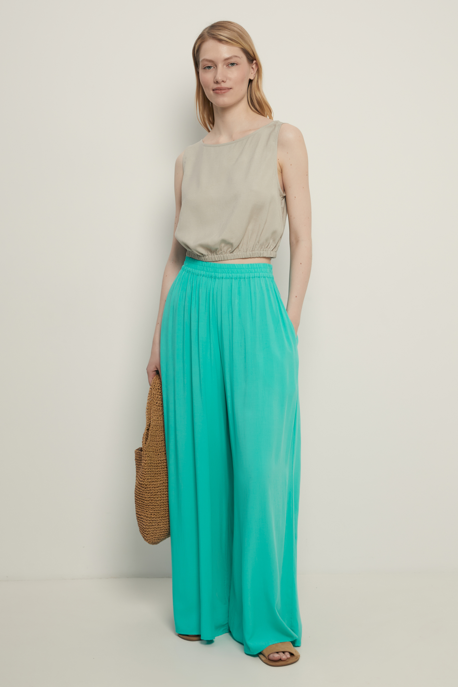 Брюки широкого кроя на резинке