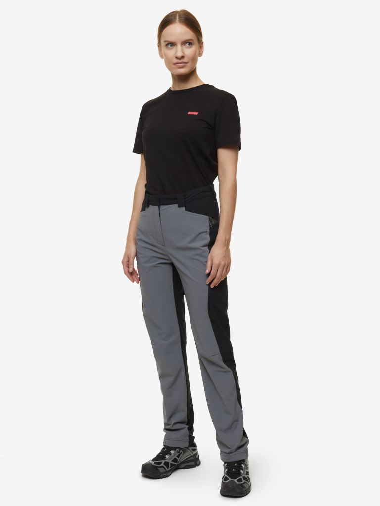 Женские брюки из легкой софтшелл-ткани для треккинга и поездок на природу в теплое время года. Эластичный материал дает свободу движениям. Быстро высыхает, защищает от ветра, поддерживает высокие дышащие и влагоотводящие свойства изделия. Брюки имеют удобную посадку по фигуре, комфортны в носке и устойчивы к истиранию.