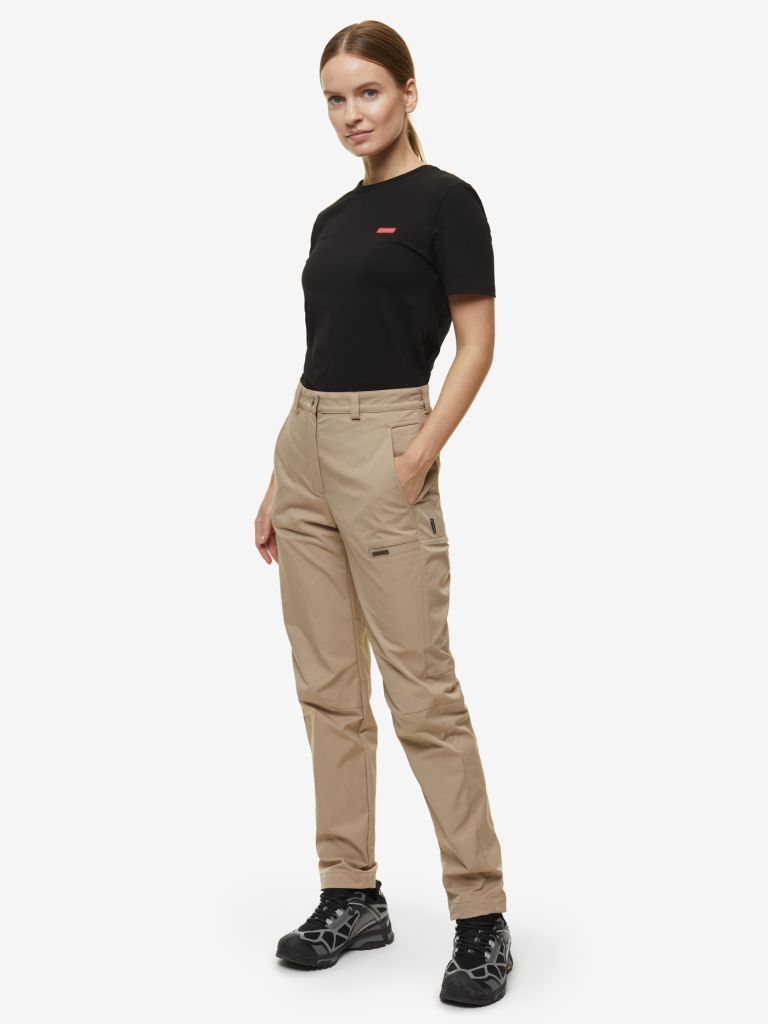 Женские брюки в casual-стиле из плотной ткани. Для города, прогулок и путешествий. Прочный внешний материал защитит от ветра, легких осадков, грязи и отлично дышит.Проверено МС по ледолазанию, тренером и путешественницей Дарьей Мининой в многочисленных поездках по стране.