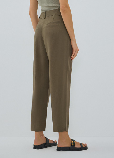 Зауженные книзу брюки изо льна, Зеленый
