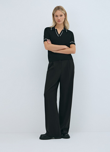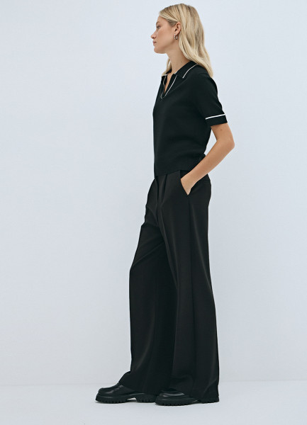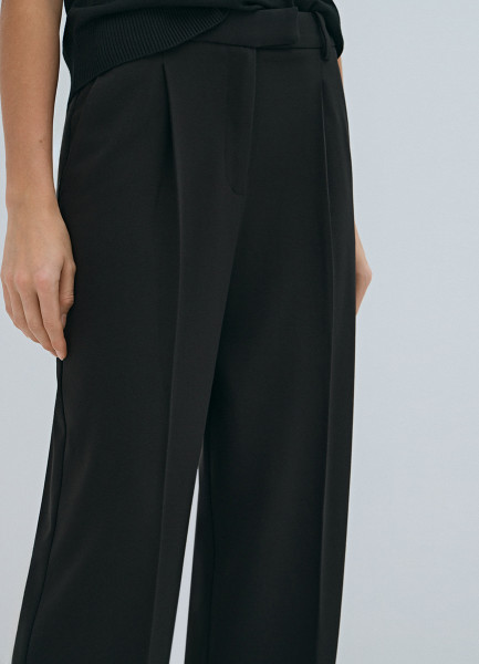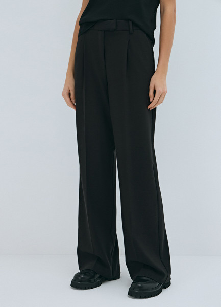 Прямые брюки со складками, Черный