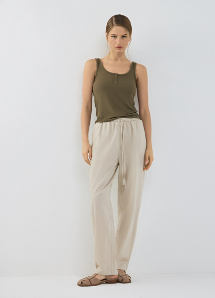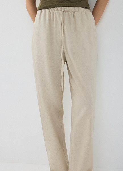 Льняные брюки Baggy, Бежевый