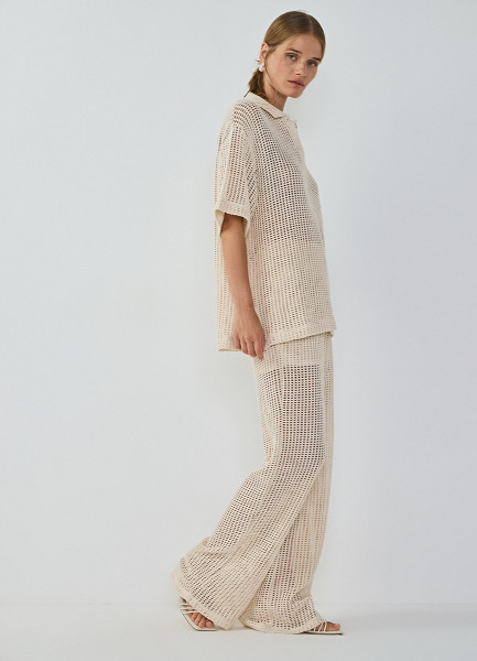 Хлопковые брюки Balloon с эластичным поясом, Бежевый